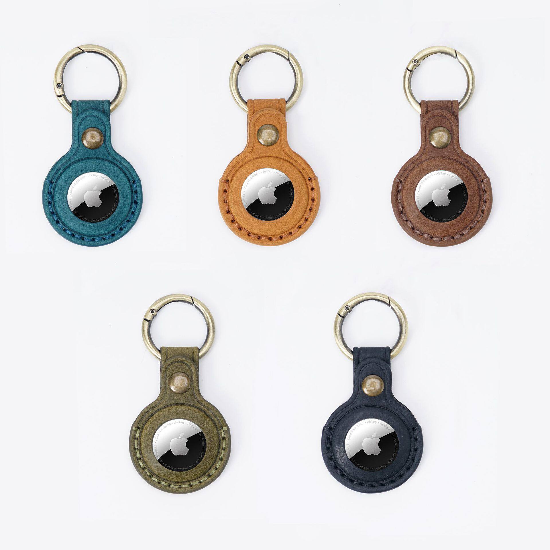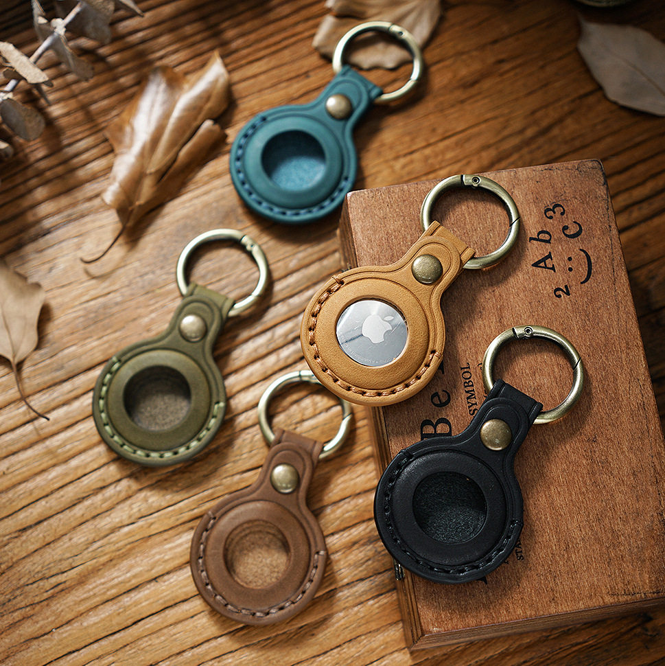 适用苹果airtag保护套牛皮宠物防丢钥匙扣定位追踪器皮套跨境现货