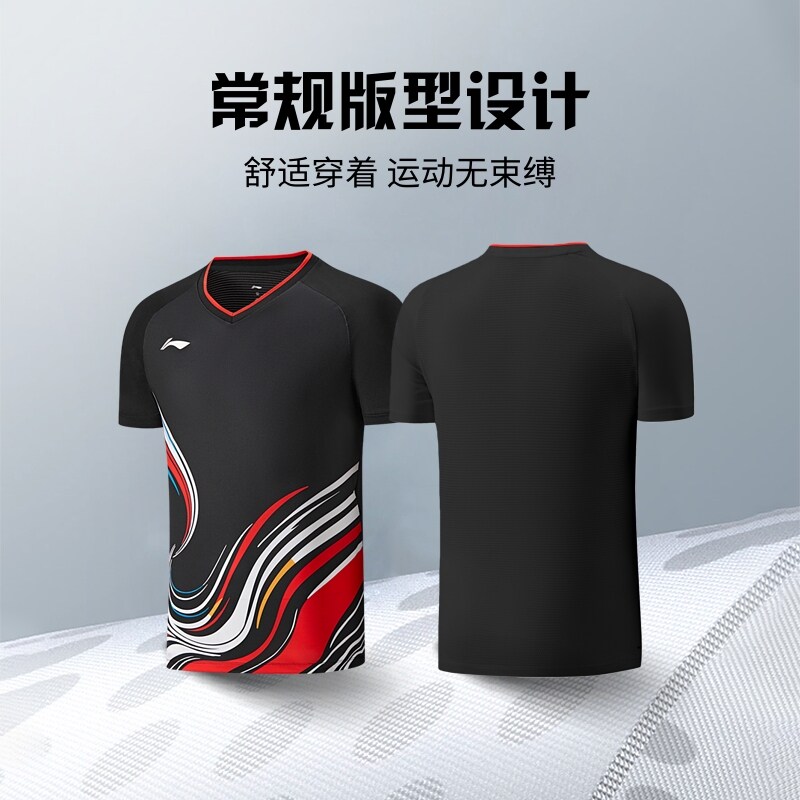 李宁羽毛球服 中青队大赛“脸谱”系列 男女同款透气运动比赛上衣