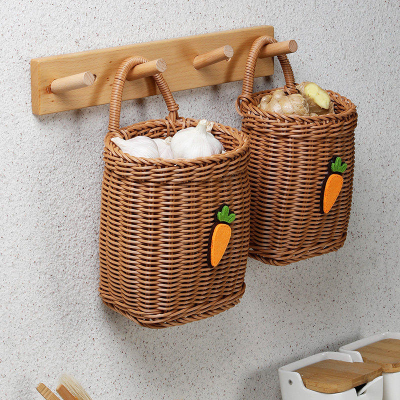 Kens北欧编织篮厨房姜蒜收纳筐复古壁挂篮手提小花篮厨具挂篮