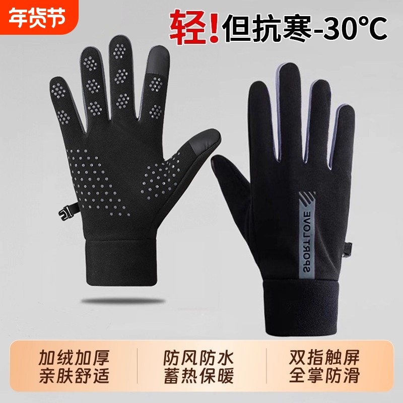 保暖手套女秋冬触屏加厚户外骑行开车德绒防风运动手套防冻男女款