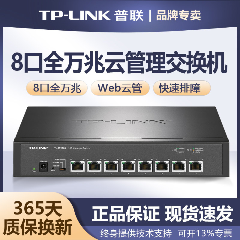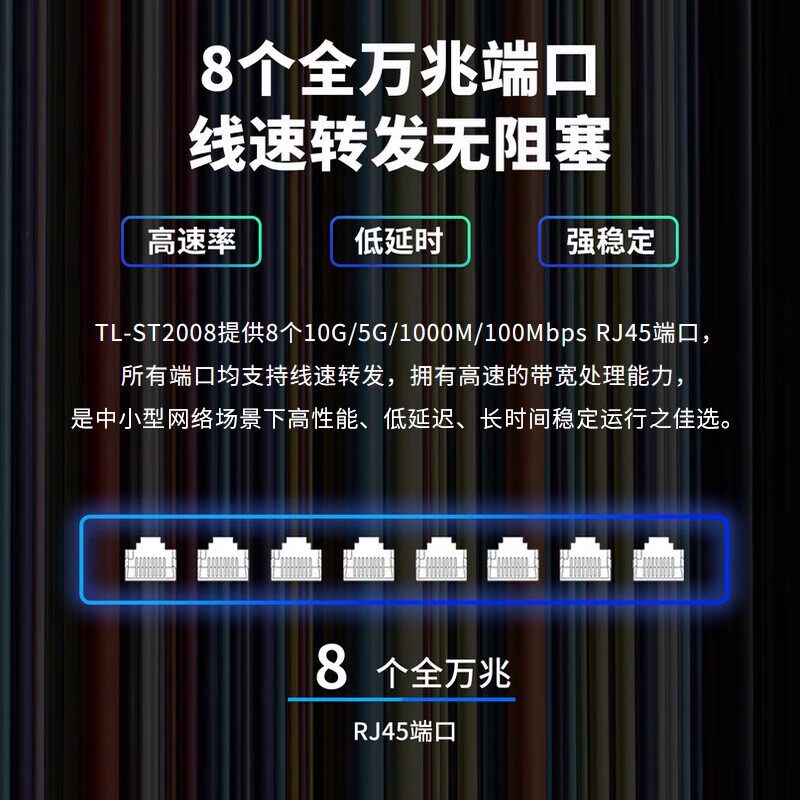 普联TP-LINK全万兆交换机5口8口高速稳定10G电口光纤家用商用服务器NAS分线器超千兆5G机房核心交换TL-ST2008