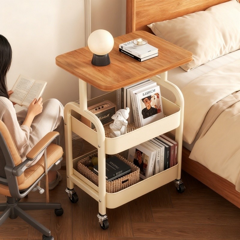 中古可移动小推车置物架落地客厅沙发边几可折叠零食收纳架床头柜