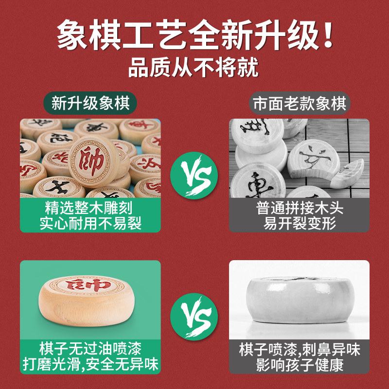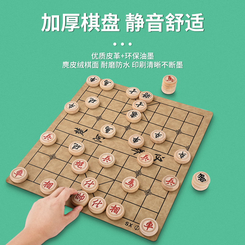 象棋中国象棋带棋盘实木小学生折叠大号比赛专用儿童皮革橡棋木制