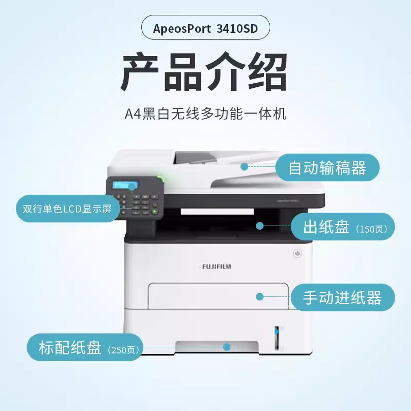 富士施乐APP3410S替代M288dw/P288DW无线wifi网络激光多功能打印机自动双面一体机连续复印扫描传真A4黑白
