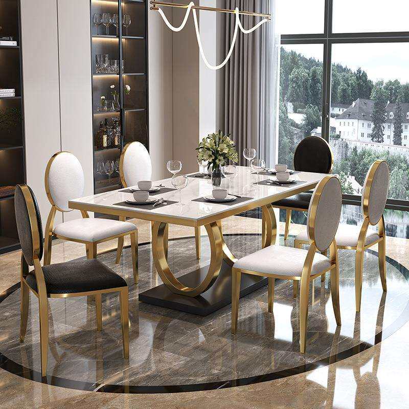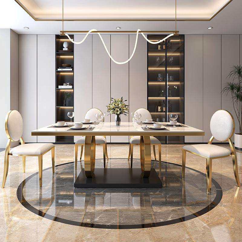 岩板餐桌家用小户型设计师亮光餐台港式轻奢大理石饭桌长方形