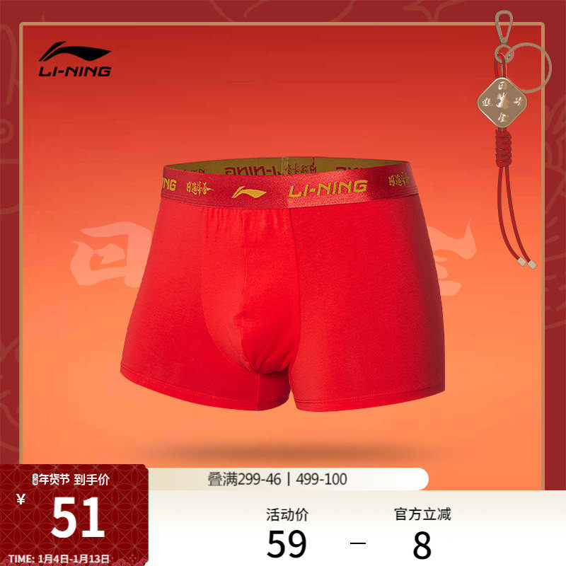 李宁日进斗金男士红色内裤2026新年款官方马年本命年弹力运动内裤
