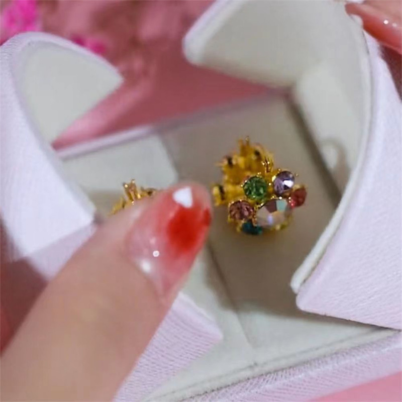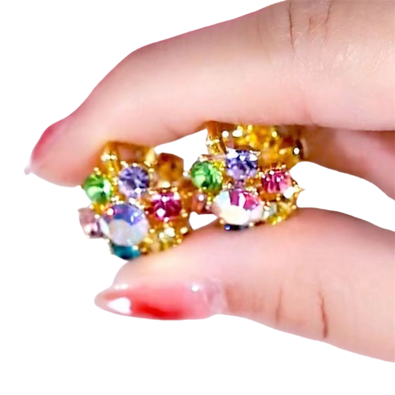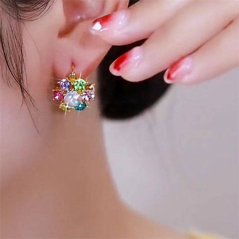 高档轻奢炫彩耳环七彩水晶个性百搭耳钉高级感气质耳扣女奢华洋气