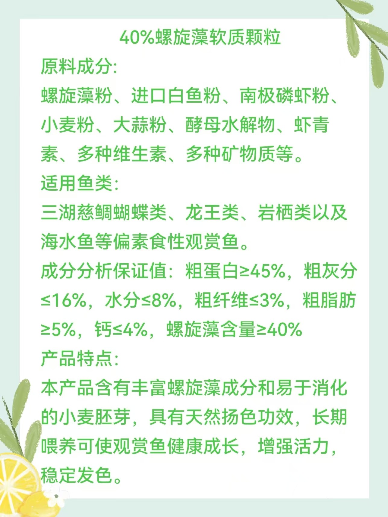 赛立德40%螺旋藻软粮三湖慈鲷淡海水鱼饲料小丑鱼蓝吊观赏鱼饲料