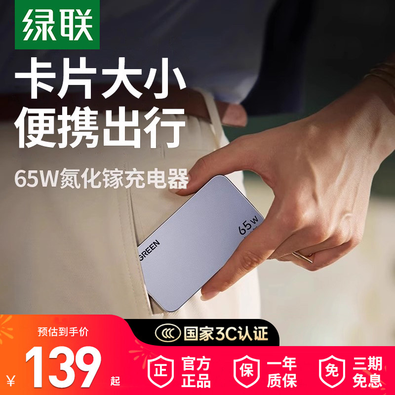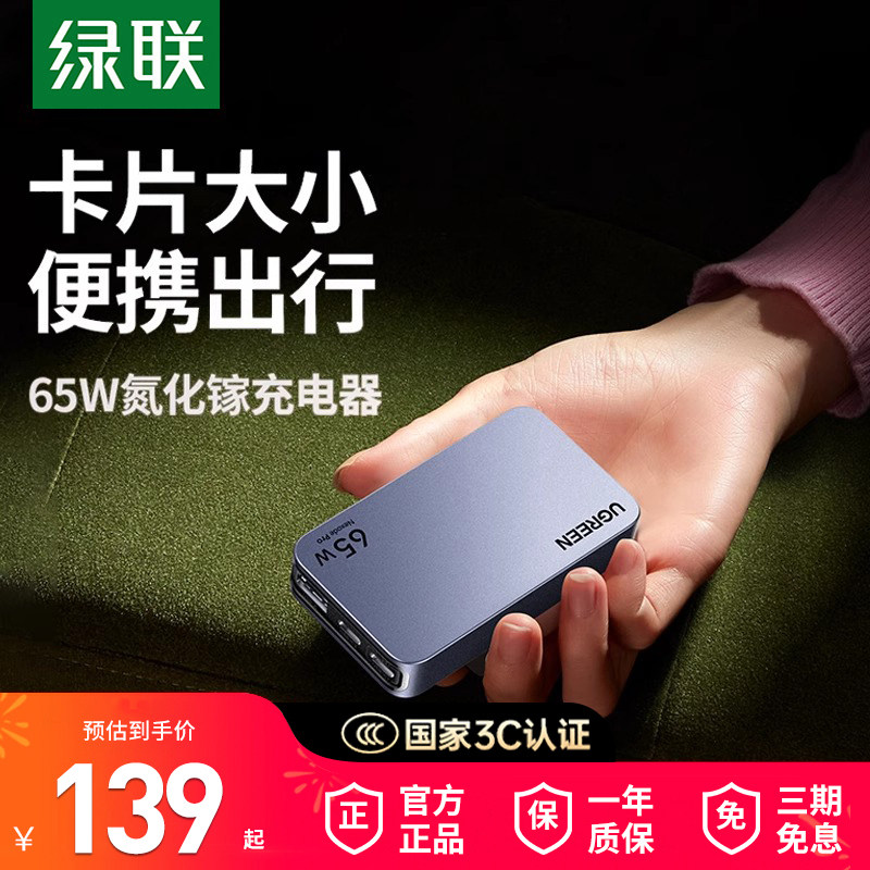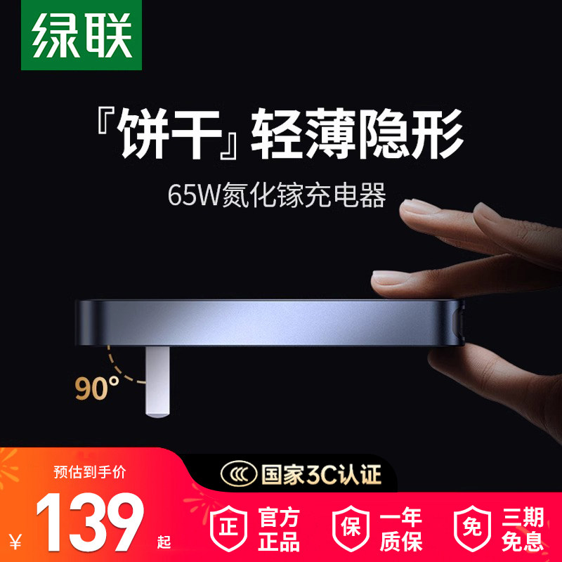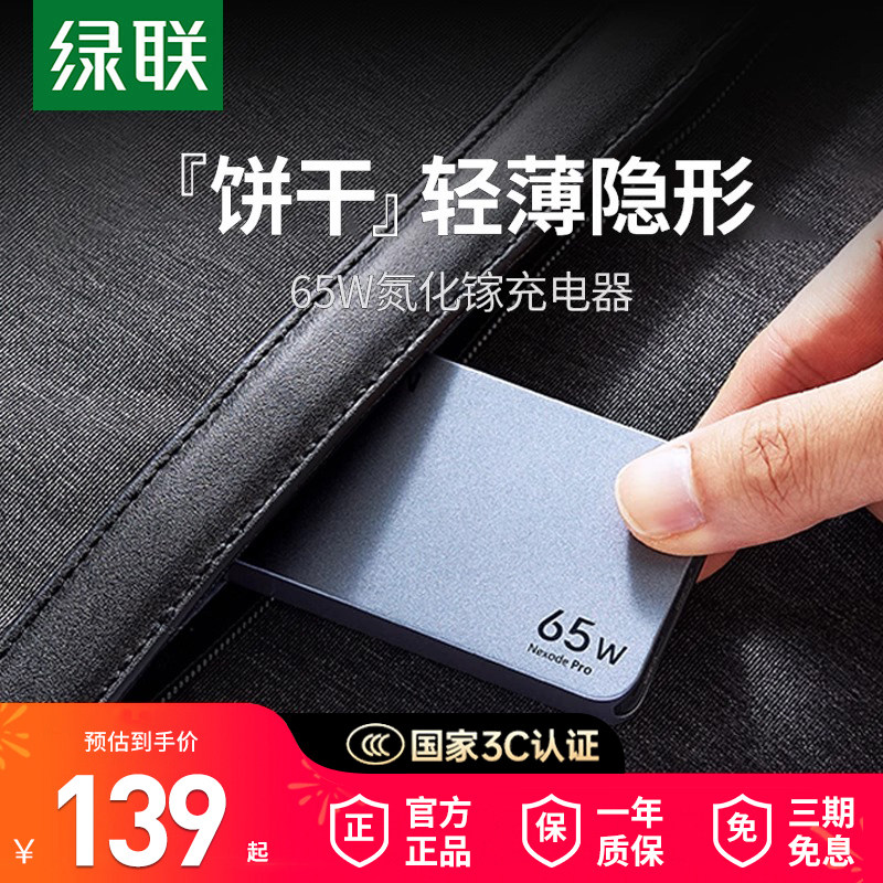 【国家3C认证】绿联65W饼干氮化镓Pro充电器PD快充头适用于iPhone17/16手机笔记本电脑轻薄双typec多口三插头