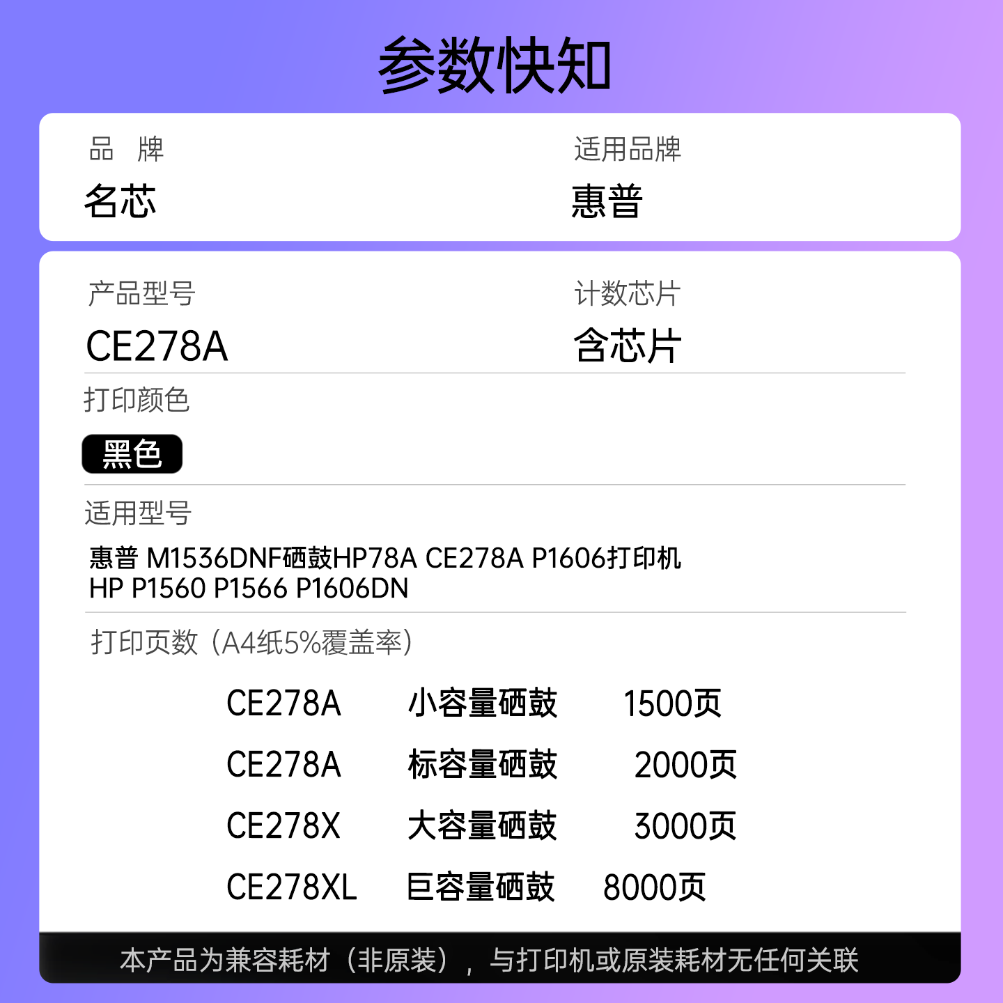 名芯 适用惠普CE278A HP78A硒鼓M1536dnf p1606dn 1506 P1566 佳能 crg328硒鼓mf4410 4710 4752 4450 4452
