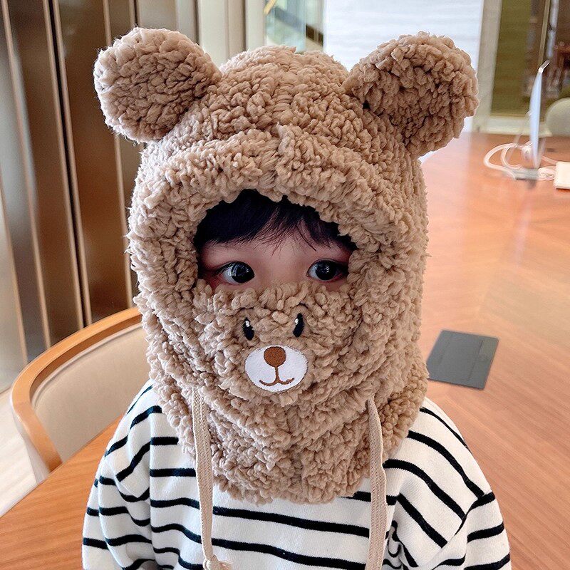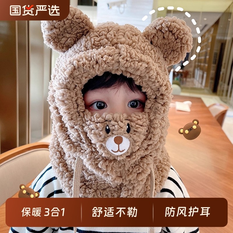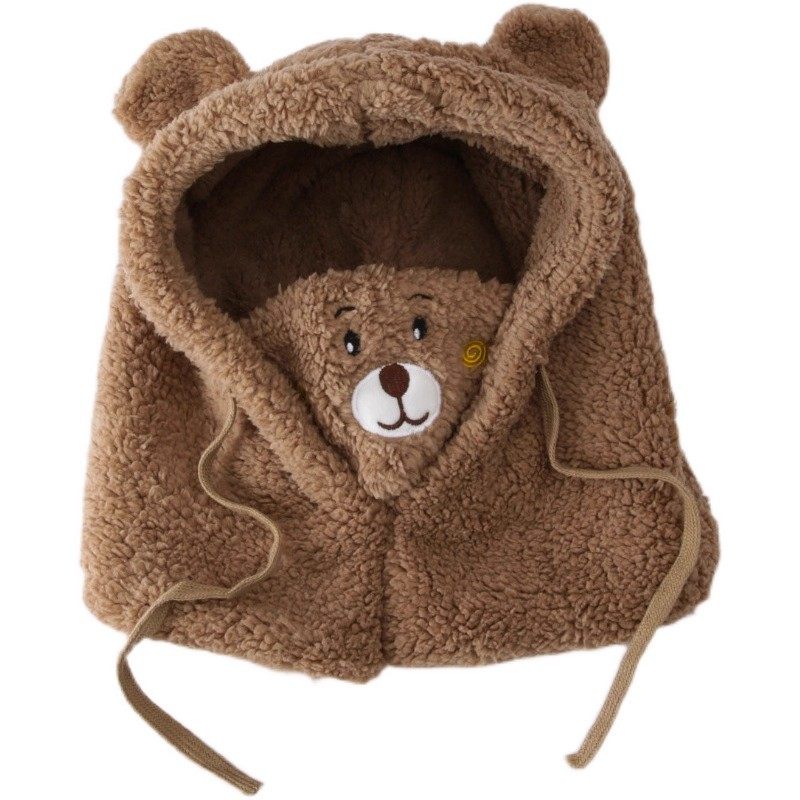 尼多熊婴儿帽子秋围脖一体宝宝毛绒帽防风护耳帽冬季保暖婴幼儿帽