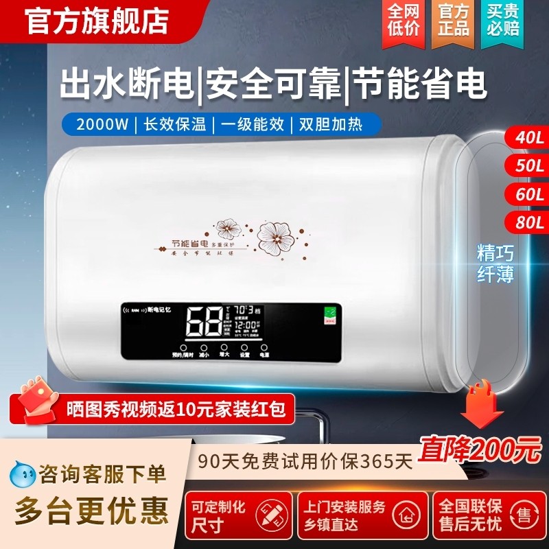 电热水器家用储水式小型60升卫生间洗澡扁桶80升速热数显出水节能
