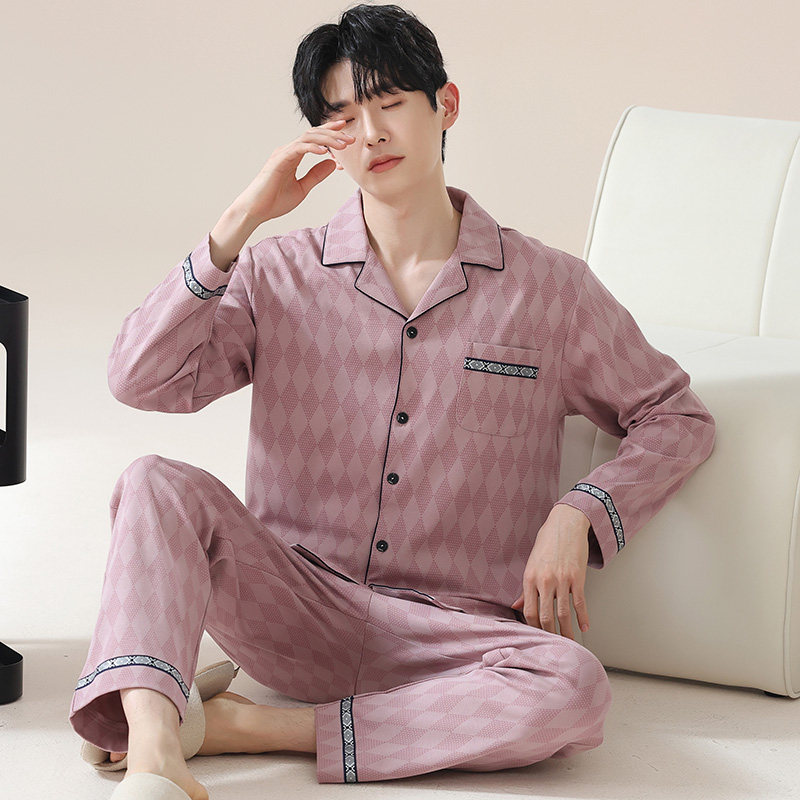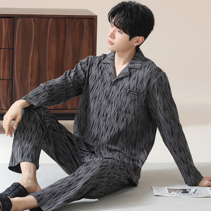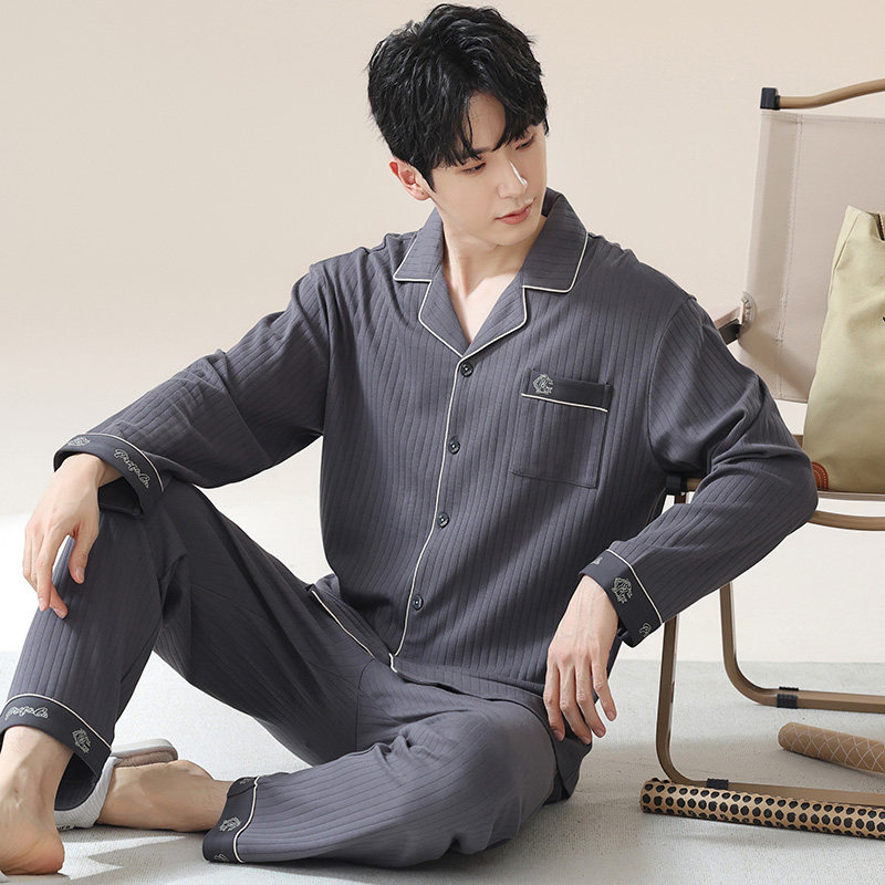 帕兰朵春秋季纯棉睡衣男士大码男款男生全棉家居服秋冬长袖套装