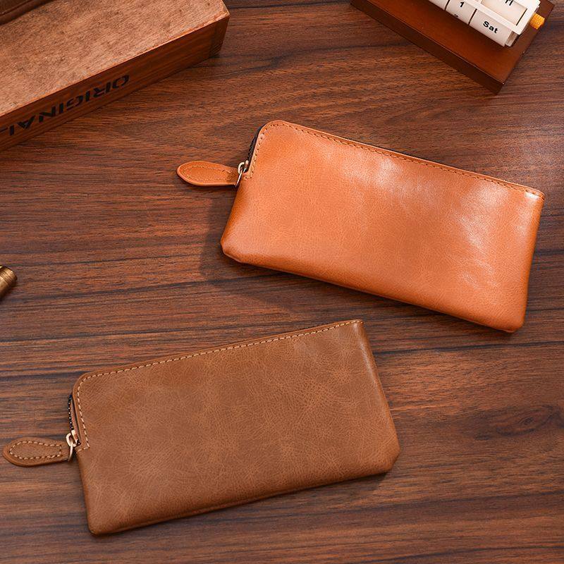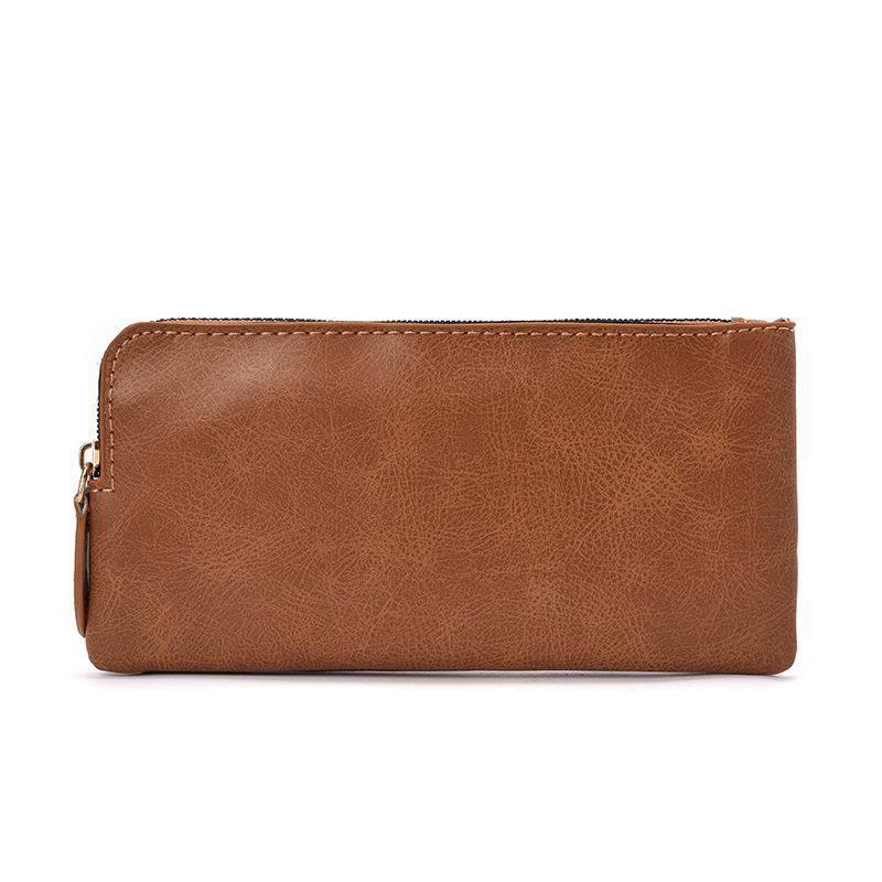 真皮质感长款钱包女复古拉链手拿零钱简约个性超薄便携卡包收纳包
