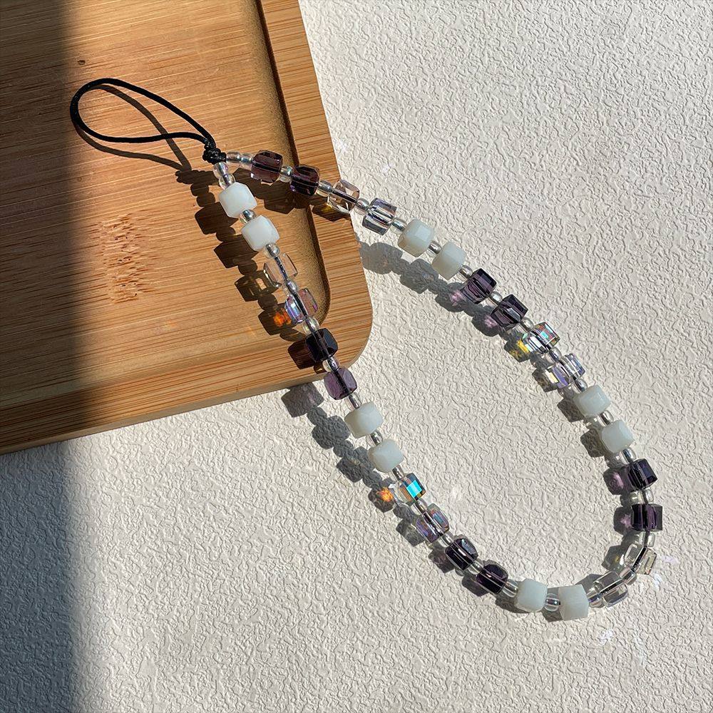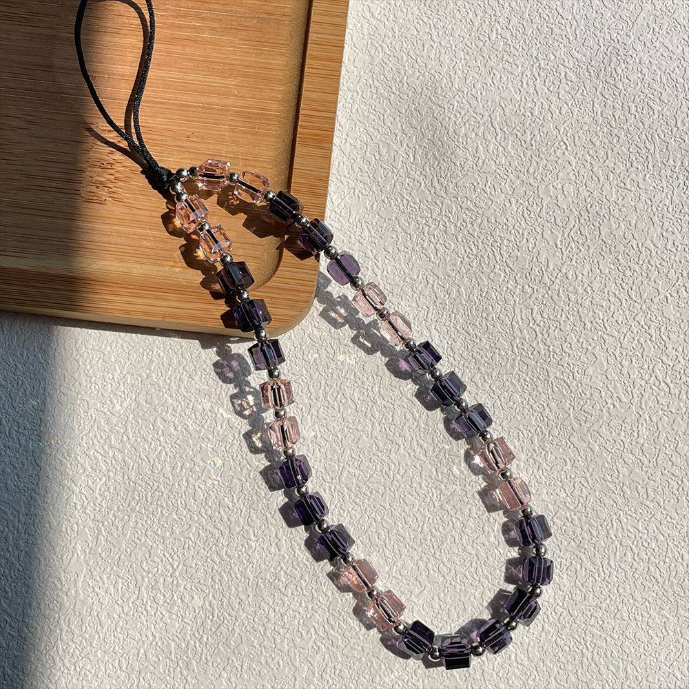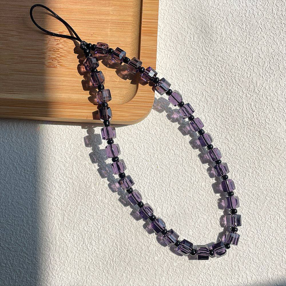 小优家浪漫紫罗兰紫色系列方糖人造水晶手机挂链条防丢手机安全绳