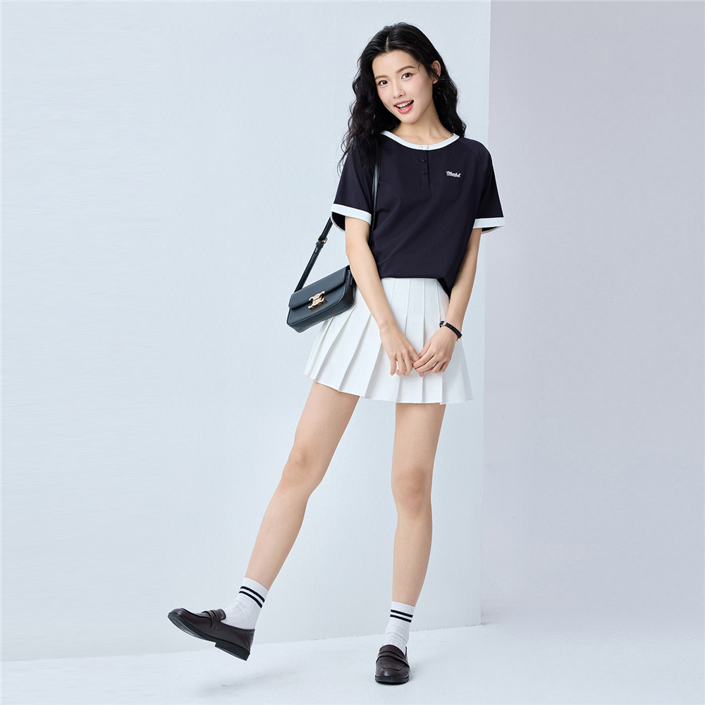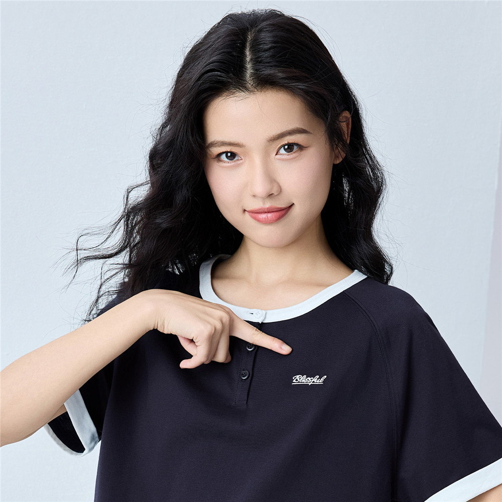 佐丹奴短袖T恤女夏季新款黑科技凉感刺绣撞色亨利领上衣13325219