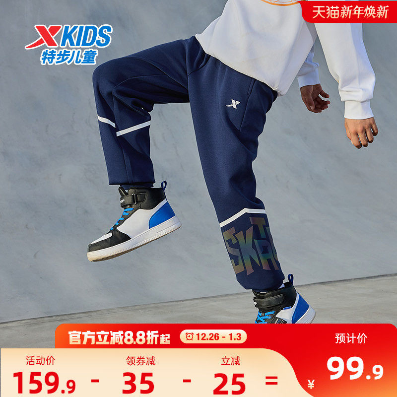 特步童装儿童滑板运动裤男童冬装2025秋冬款大童加绒裤子保暖长裤