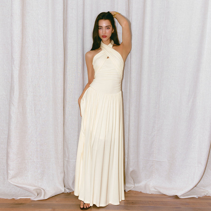 【papi同款】半练带胸垫吊带裙纯欲气质挂脖连衣裙黑裙子粉色长裙