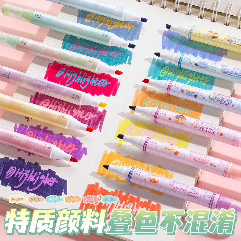 多巴胺可叠色双头荧光笔高颜值手帐笔彩色划重点大容量标记记号笔