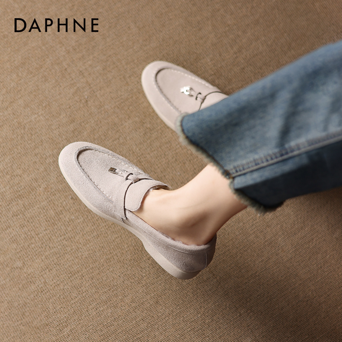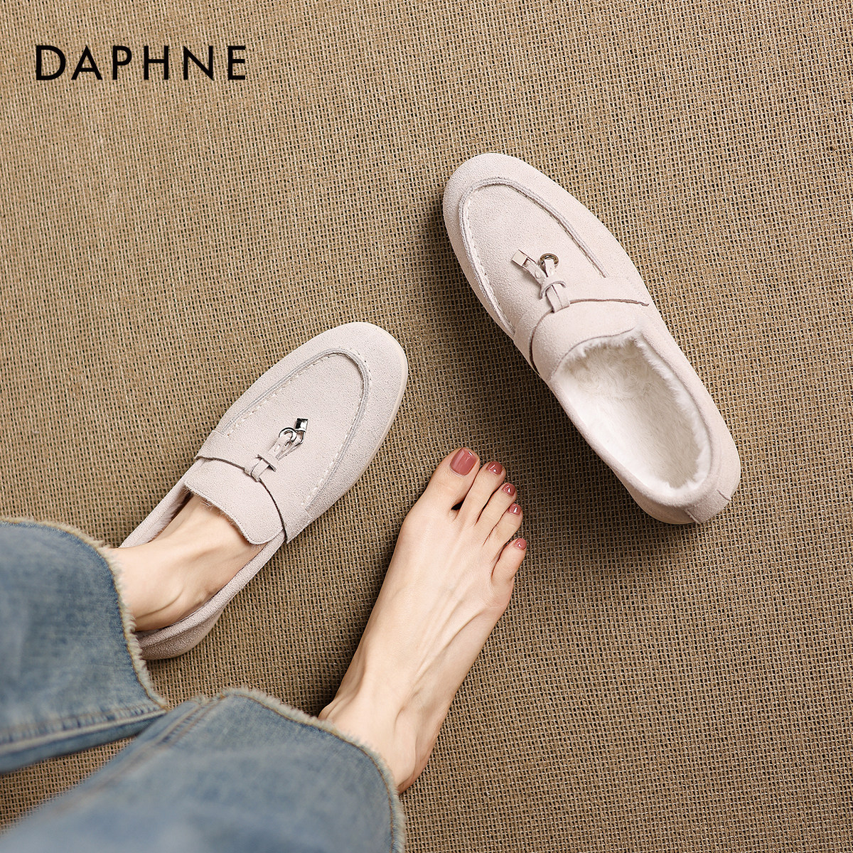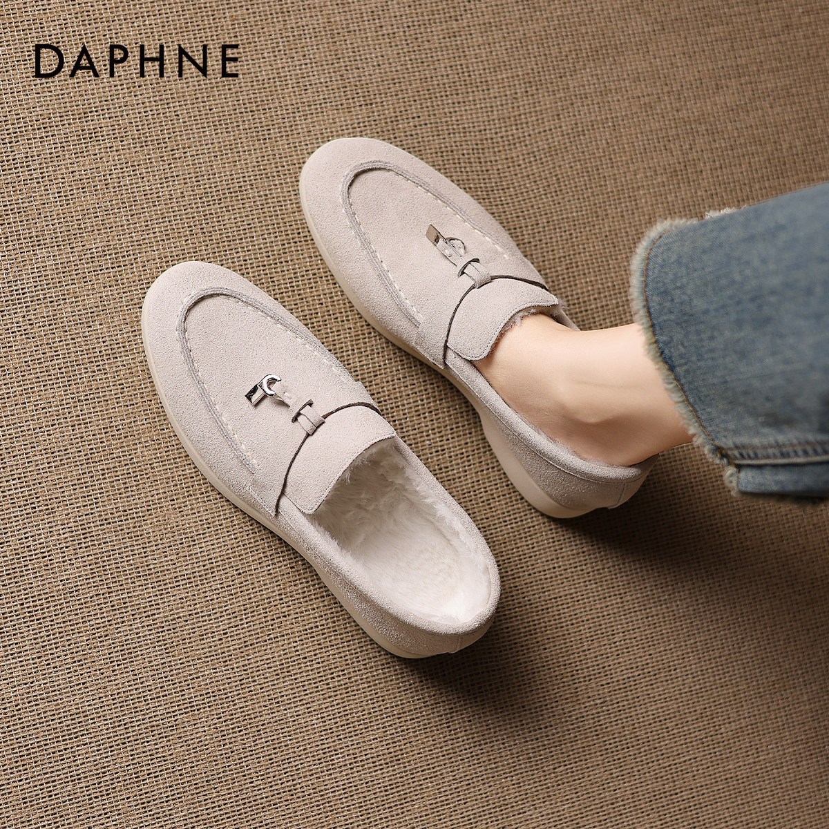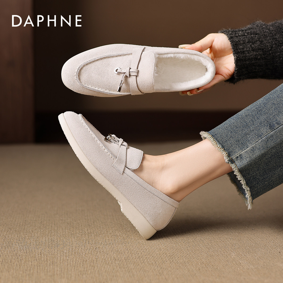 达芙妮加绒乐福鞋女2026新款冬季平底老钱豆豆单鞋一脚蹬保暖棉鞋