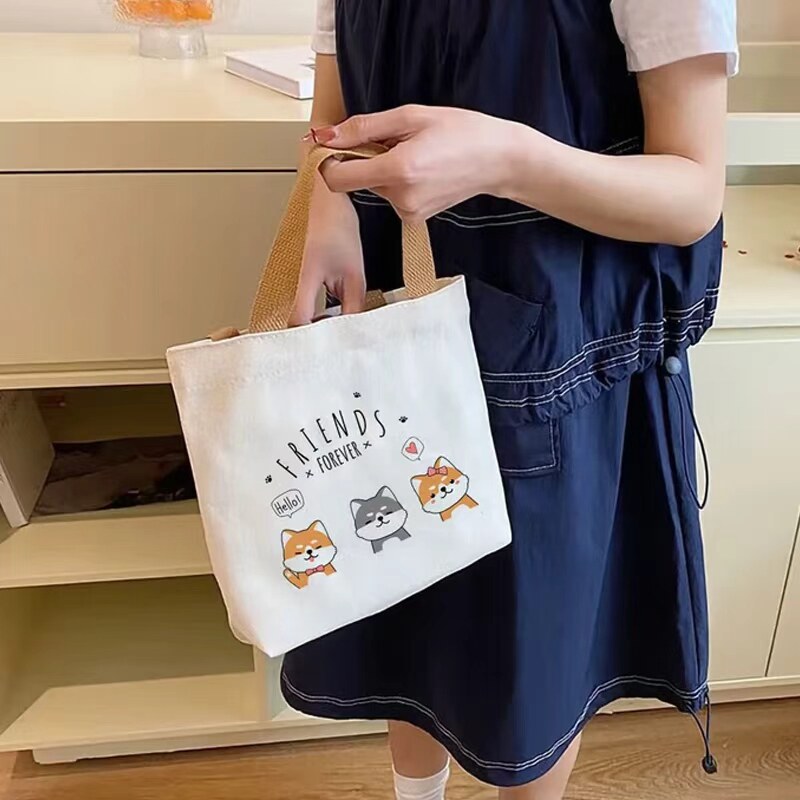 帆布包女卡通简约迷你零食饭盒包手拎小布袋上班族出门杂物手提包