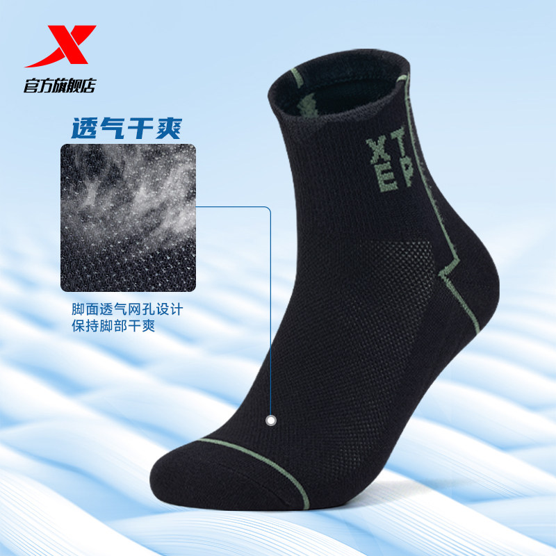 特步跑步健身袜子男款网球休闲袜女士中筒袜户外登山袜短袜子