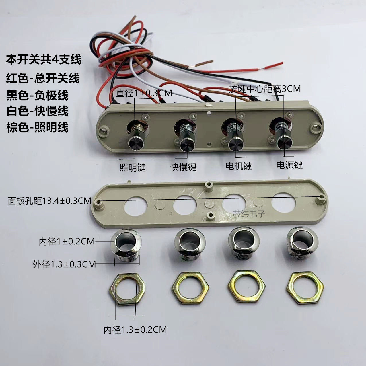 抽油烟机开关按键通用配件老式小四位机械按钮四孔控制器面板包邮