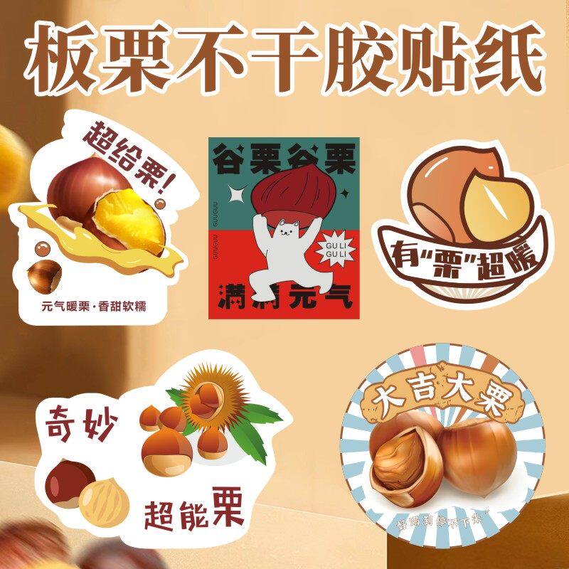 定制板栗坚果贴纸logo二维码包装袋罐装标签夏威夷果碧根果核桃开心果巴旦木瓜子杏仁松子榛子腰果瓶身不干胶