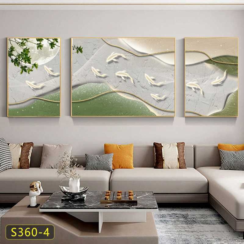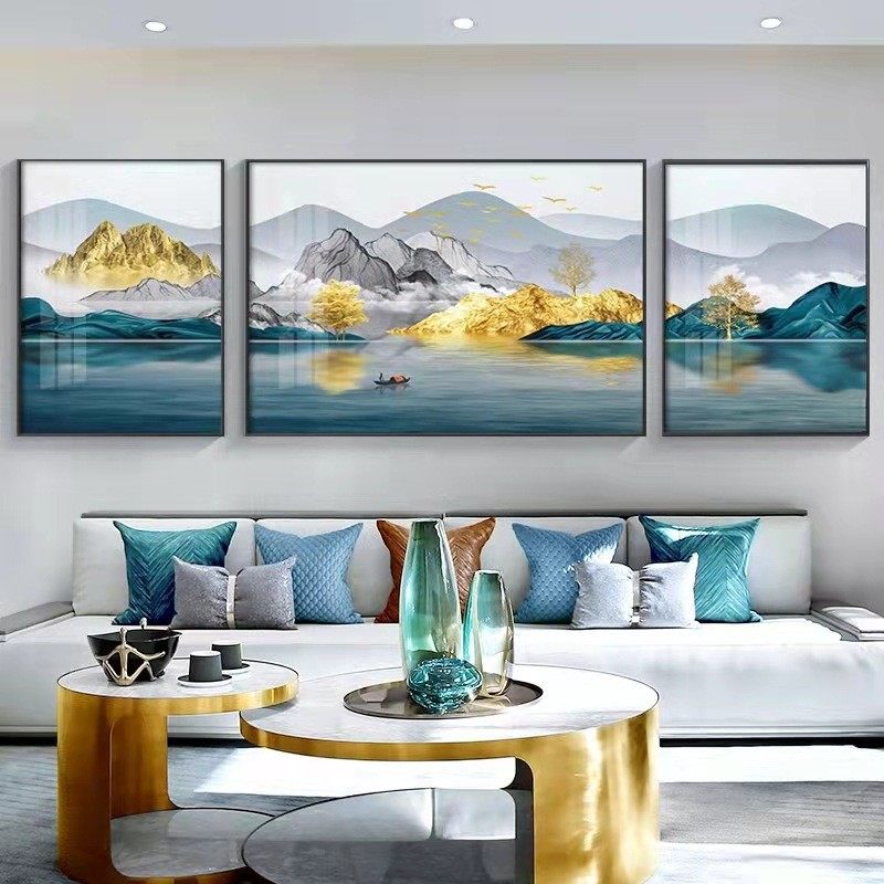 现代简约客厅装饰画沙发背景墙壁画晶瓷餐厅北欧轻奢三联挂画有框