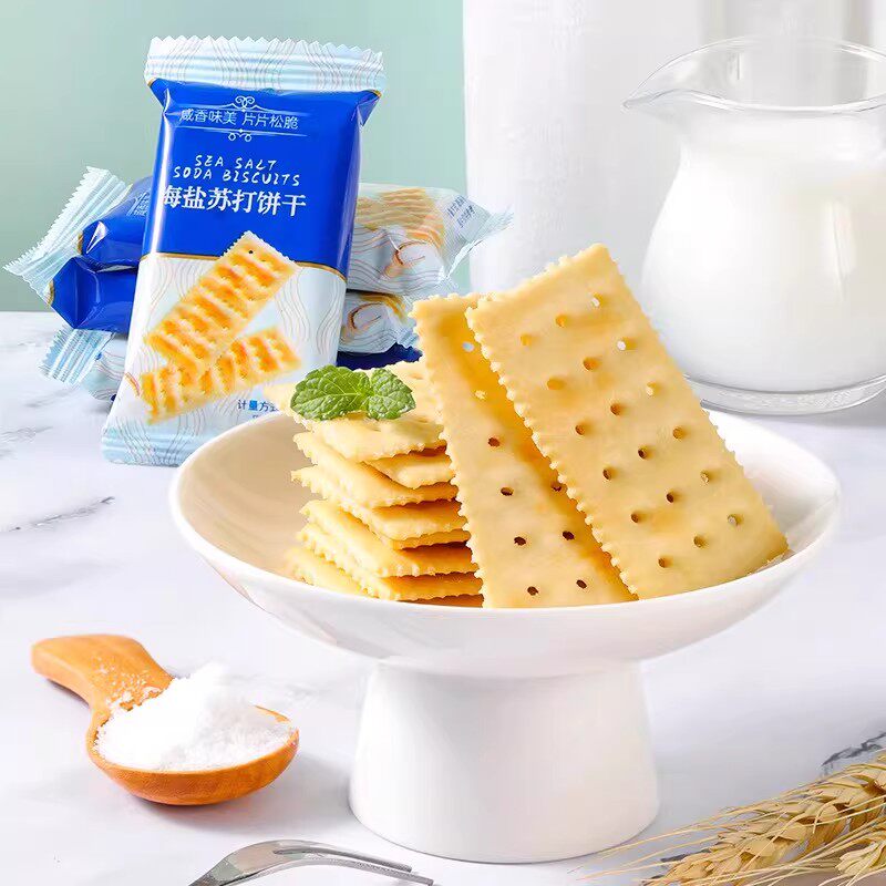 【0反式脂肪酸】海盐奶味苏打饼干养胃碱性奶盐苏打薄脆零食整箱