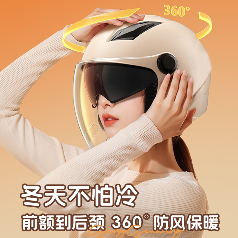 头盔3C电动车秋冬季保暖男女士四季用摩托车安全帽镜片防风国标
