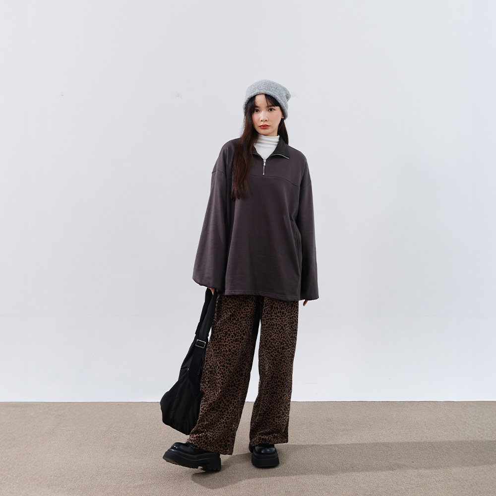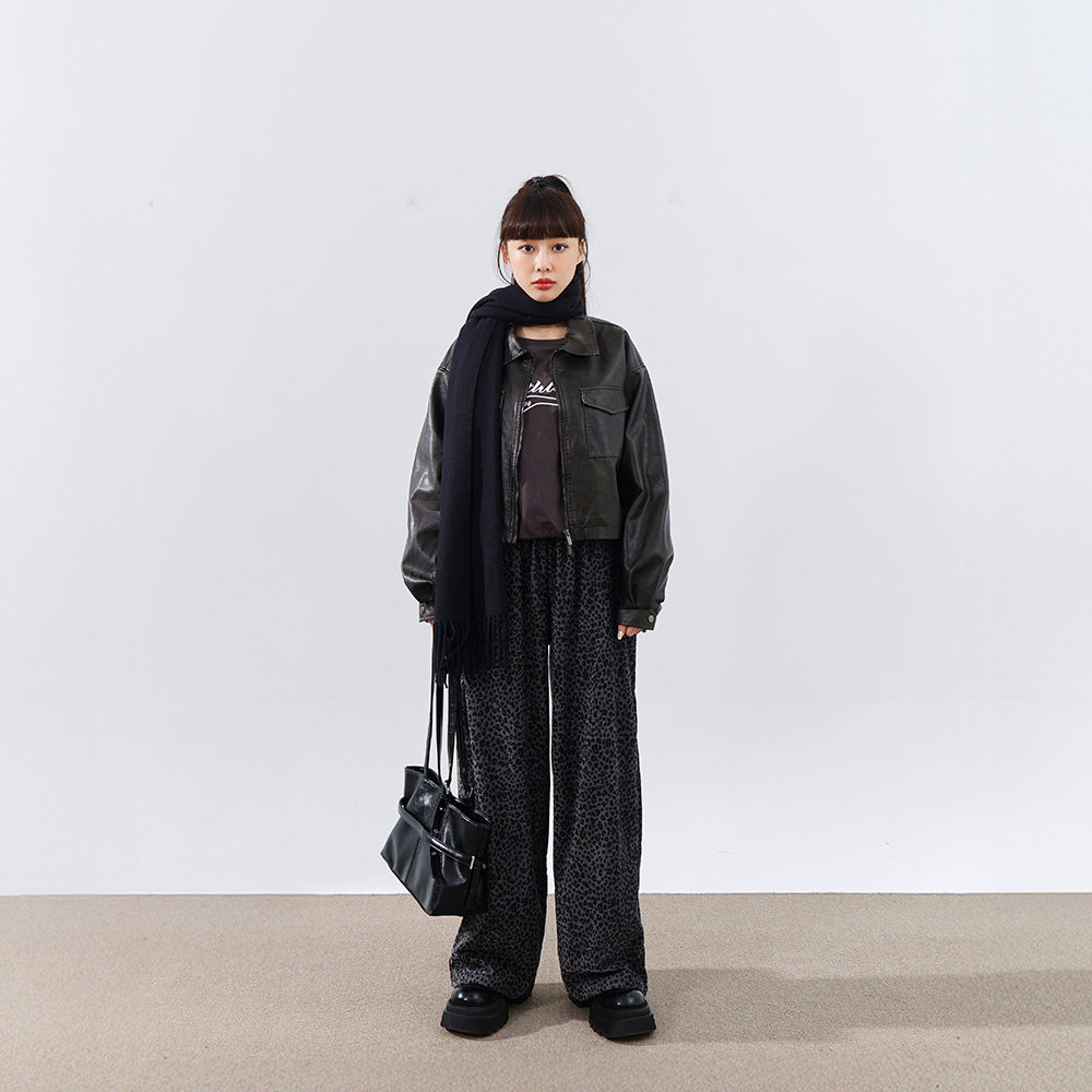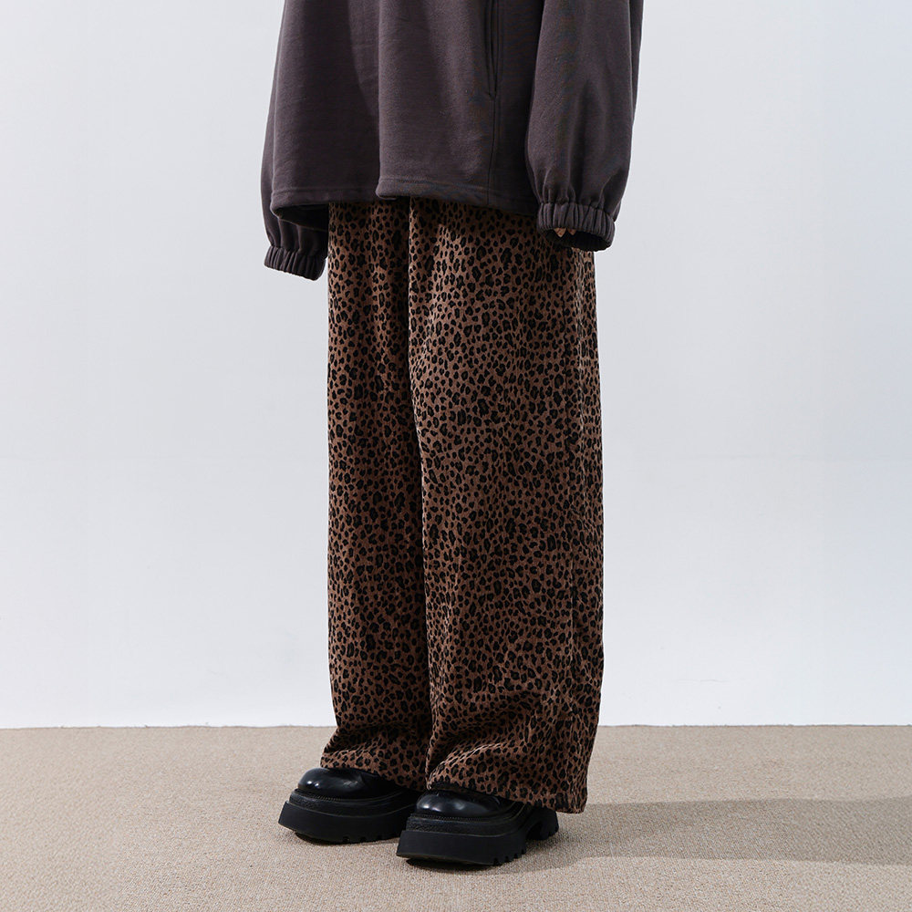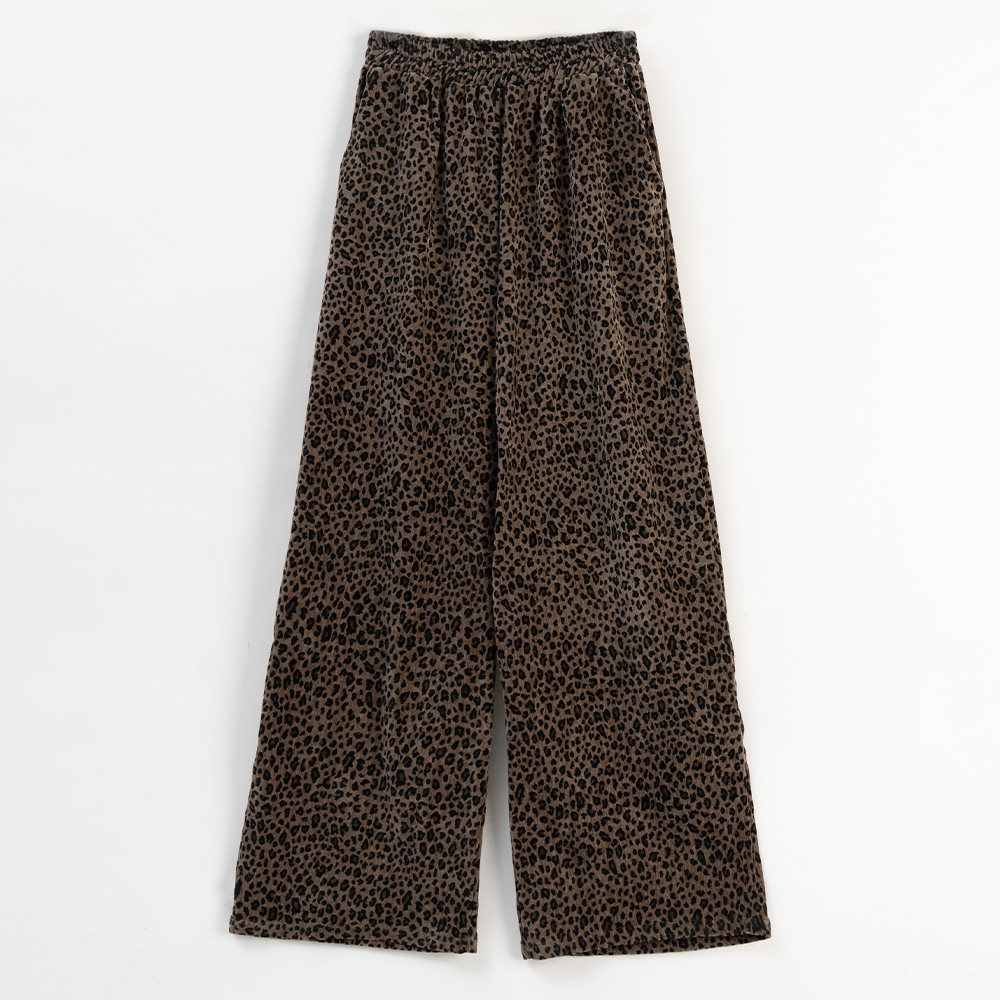 QUEENSHOP 2026春夏新品女装个性豹纹光泽设计绒面长裤04102012