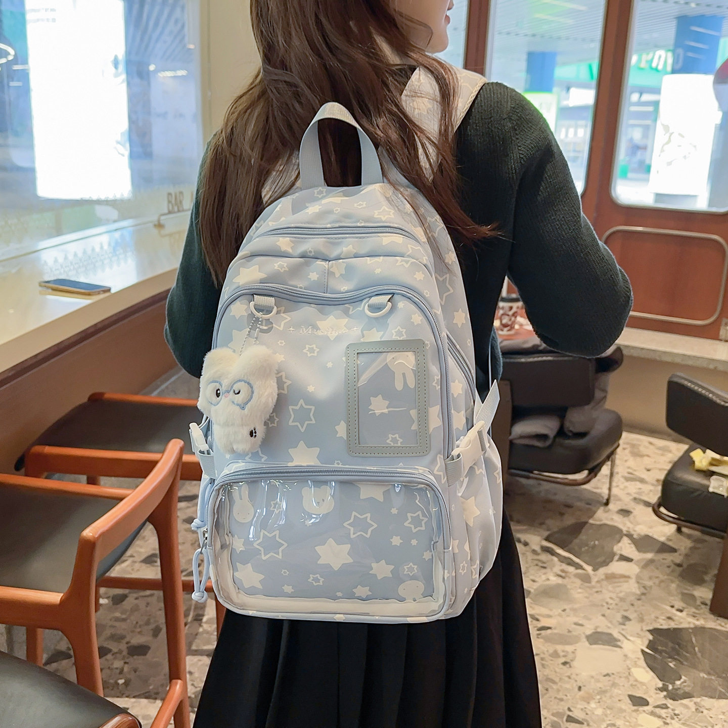 高颜值清新甜美双肩包日系星星吧唧痛包初高中生大容量双肩书包