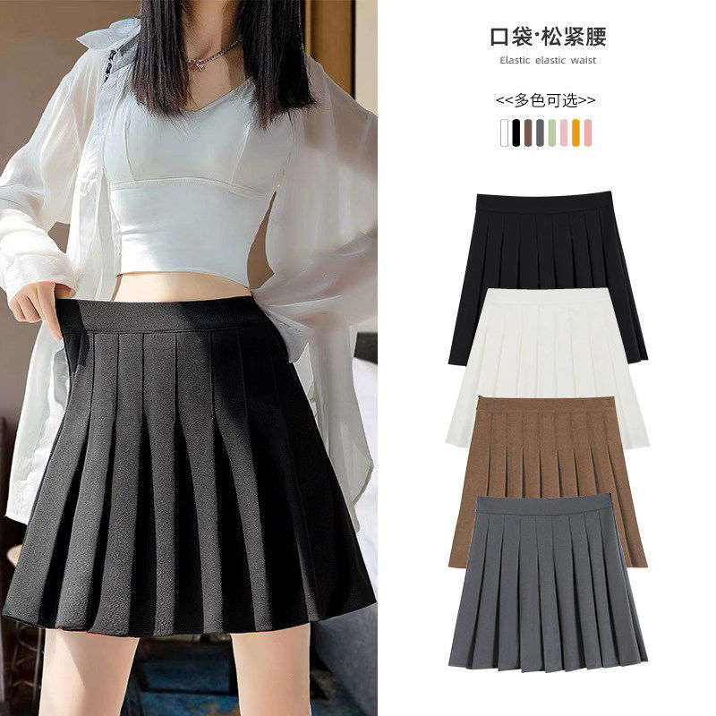 大码松紧腰百褶裙女春秋款半身裙显瘦a字裙高腰秋冬包臀弹力短裙