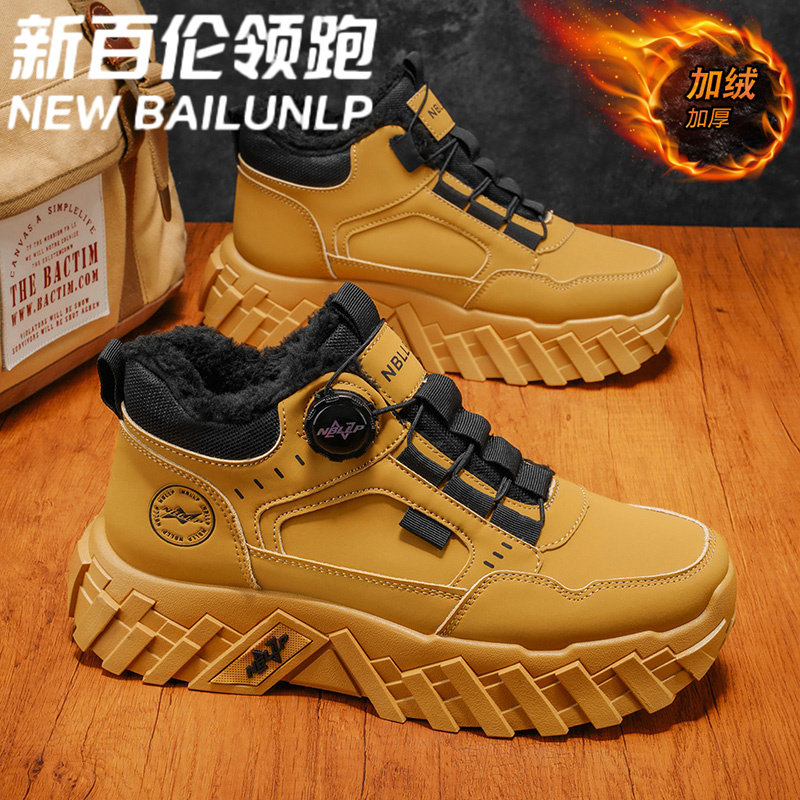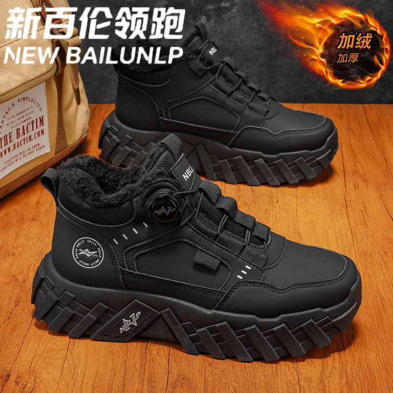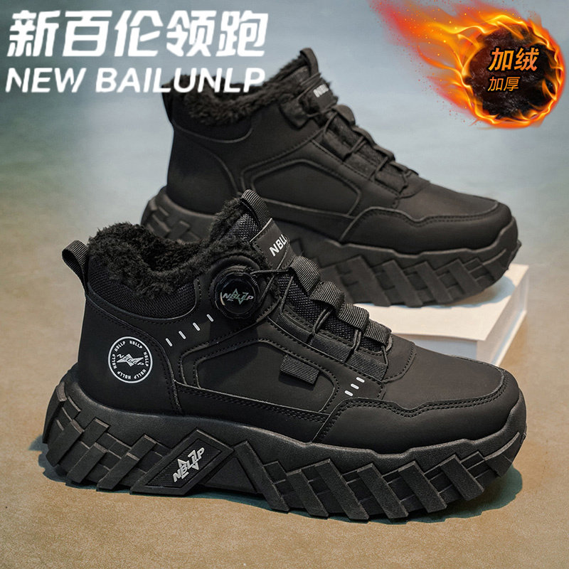 新百伦领跑冬季加绒保暖棉鞋男士高帮旋转扣马丁靴户外雪地靴鞋带
