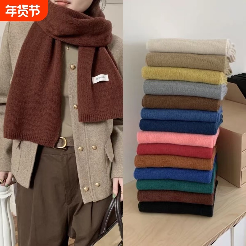 2025新款ins风韩系针织纯色围巾保暖百搭简约氛围感情侣围脖高级