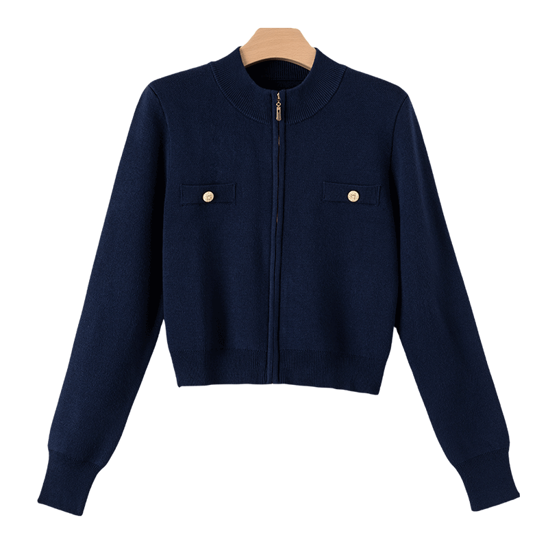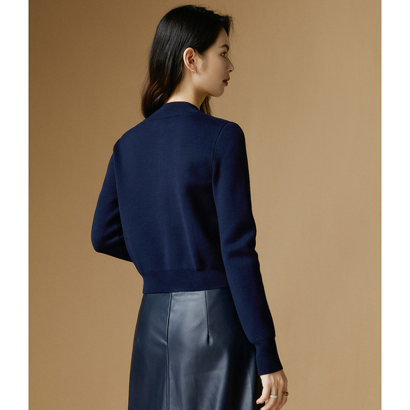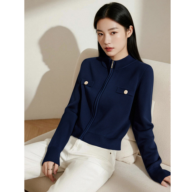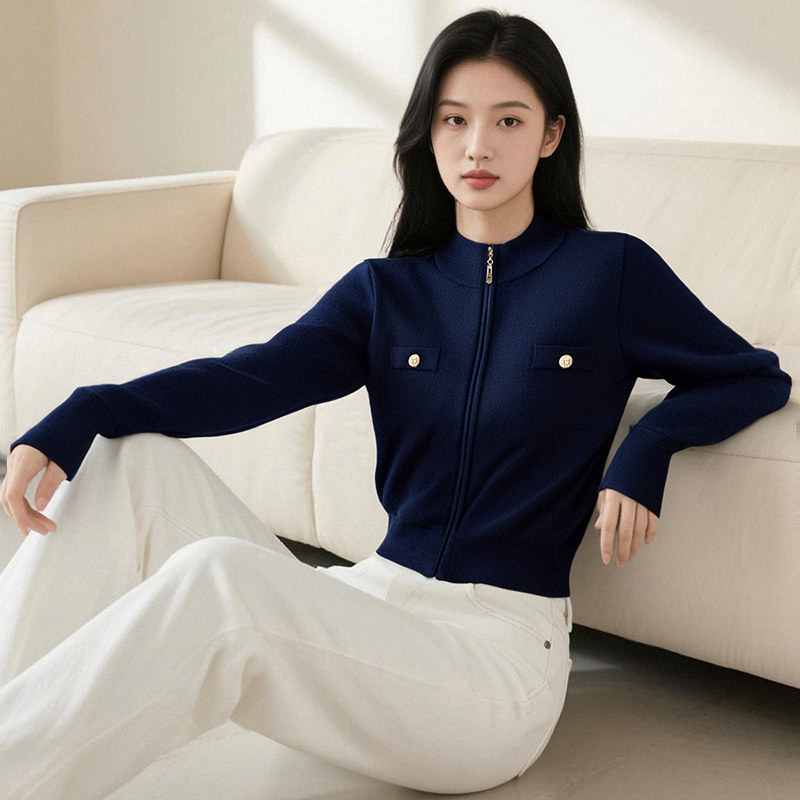 晚白2025秋冬新款针织开衫纯色显瘦小个子短款显高休闲减龄外套女