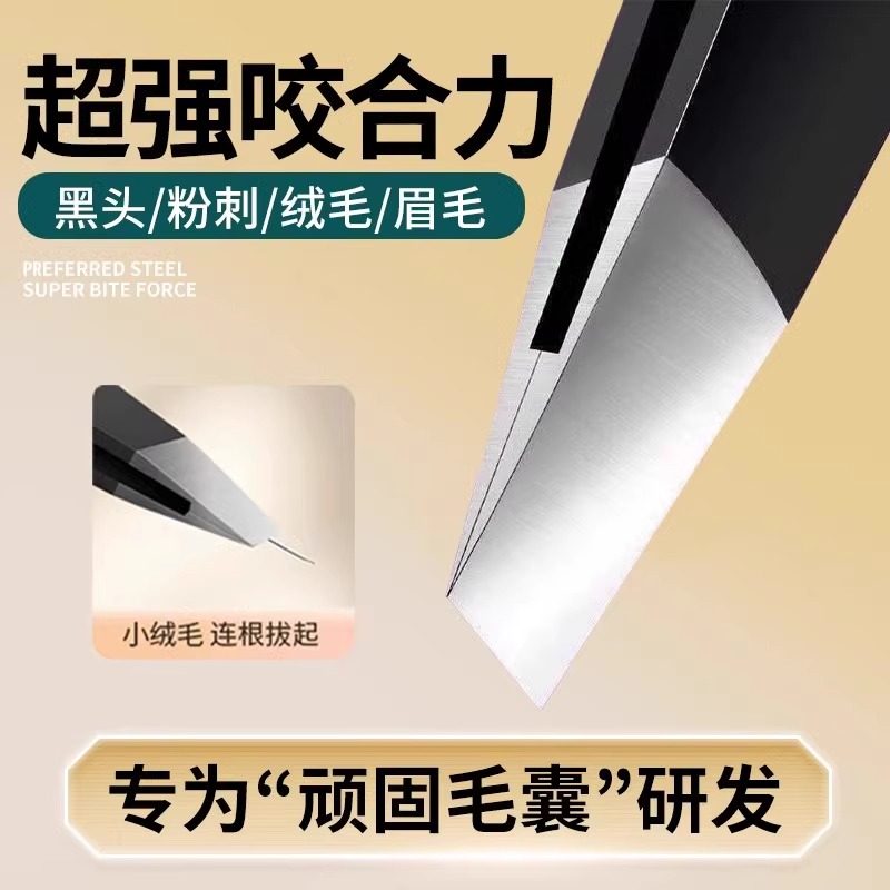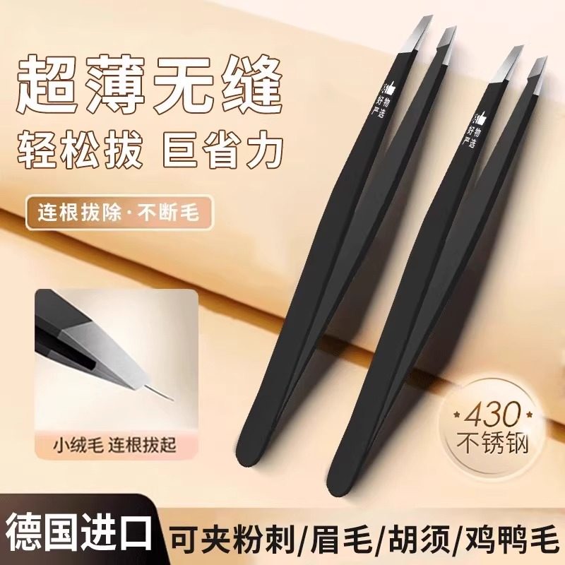 美容院专用拔胡须神器拔毛镊子修眉夹黑头夹不锈钢胡子粉刺平口