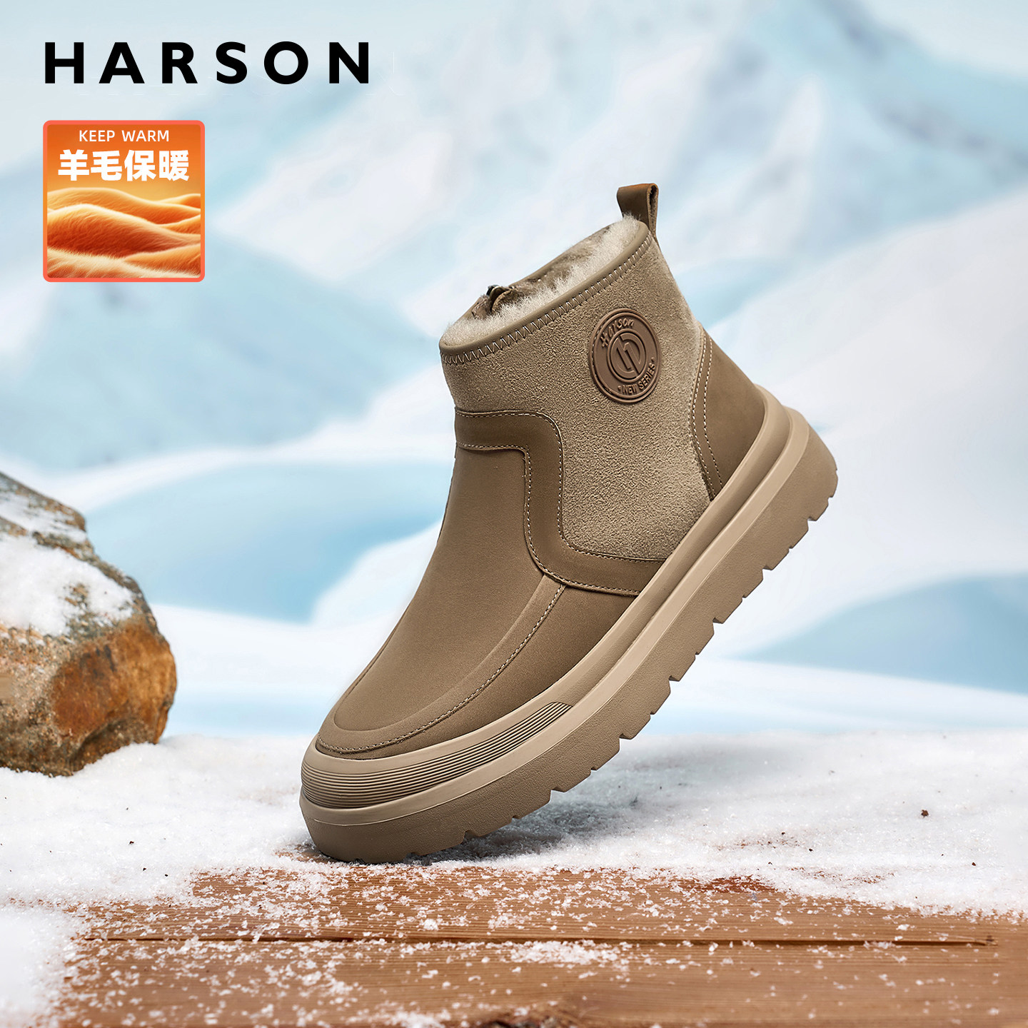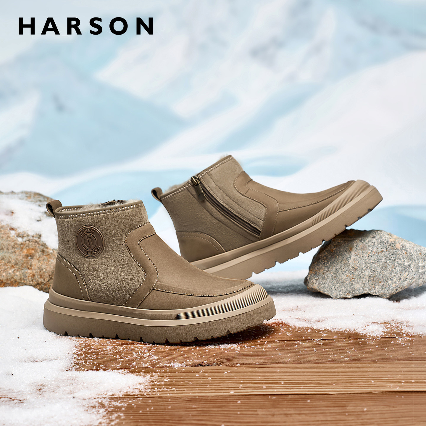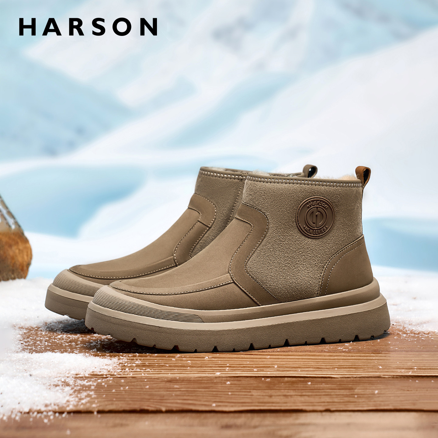 哈森厚底皮毛一体雪地靴男冬季加绒男鞋防水防滑羊毛靴子新款男靴