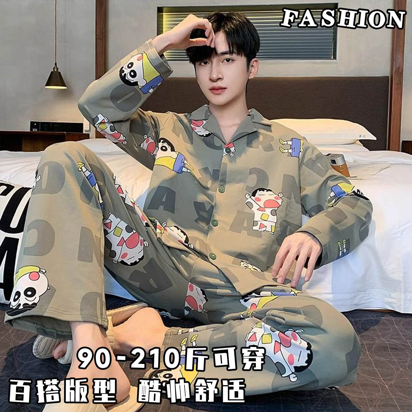 卡通休闲春秋夏季睡衣男士长袖长裤网红高级感简约开衫家居服套装