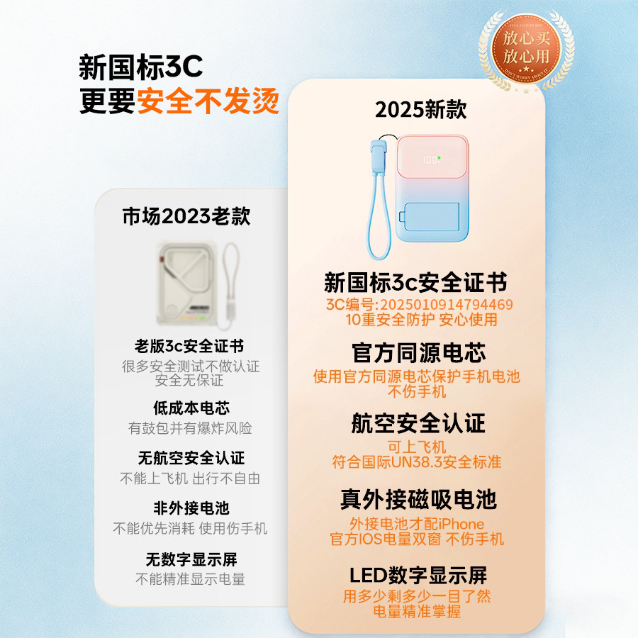 【充电宝3C认证可上飞机】政府补贴15%品胜mini小相机2025新款迷你超薄小巧便携自带线快充适用华为苹果小米