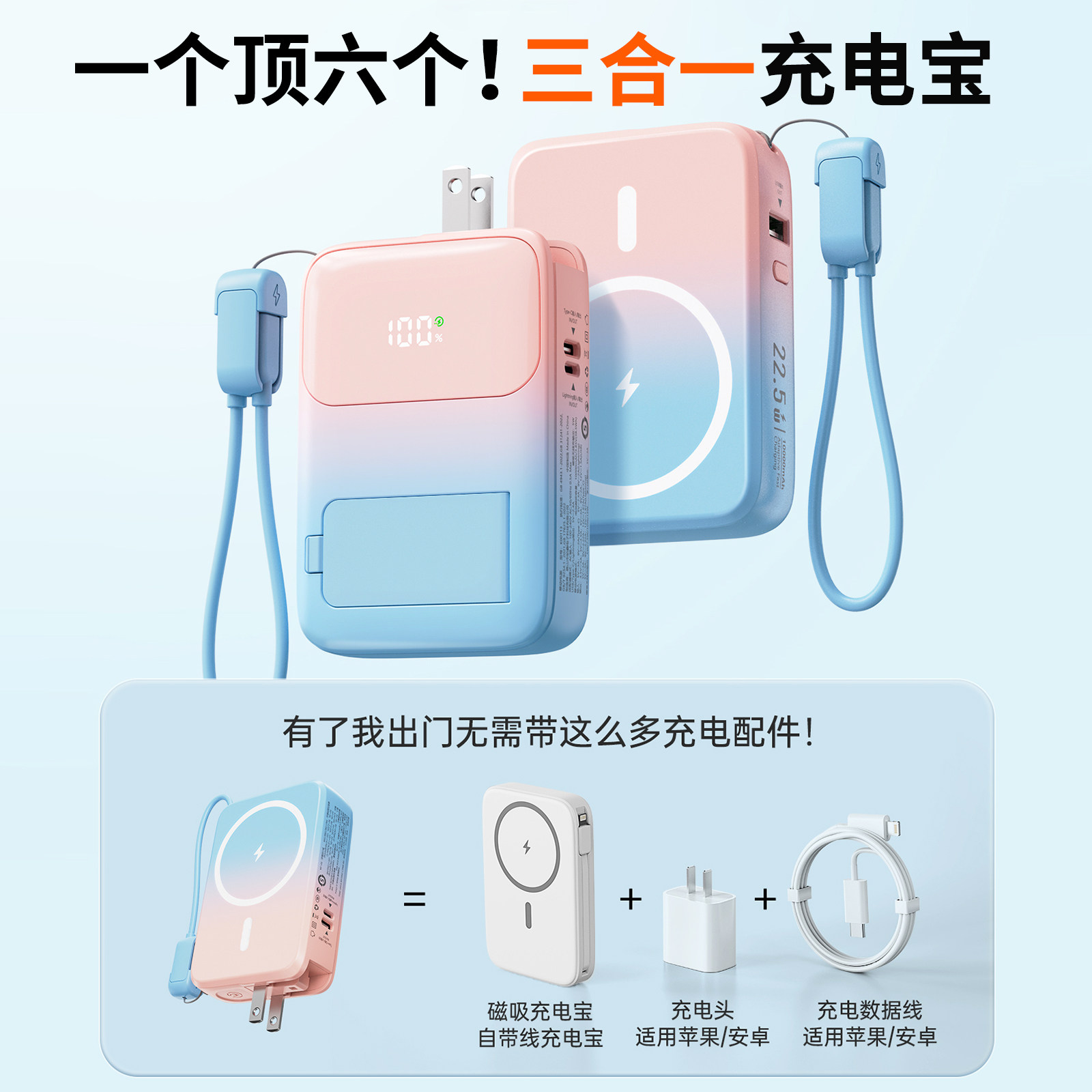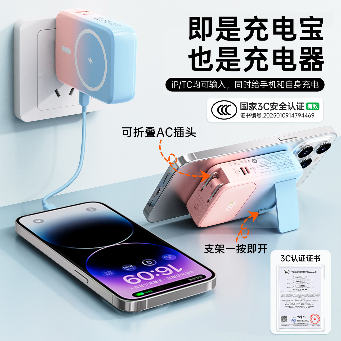 【3C认证充电宝】品胜胶囊充电宝2025新款自带支架小巧便携快充官方旗舰店正品17适用iPhone16华为苹果15