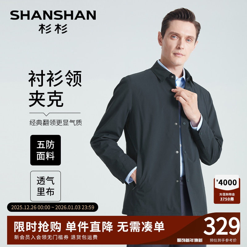 杉杉行政夹克外套男款2025秋季新款干部商务翻领中男士茄克爸爸装