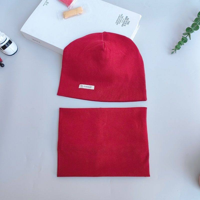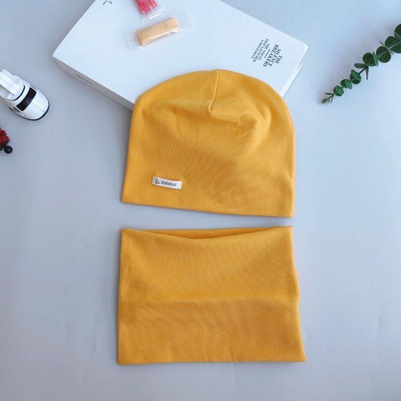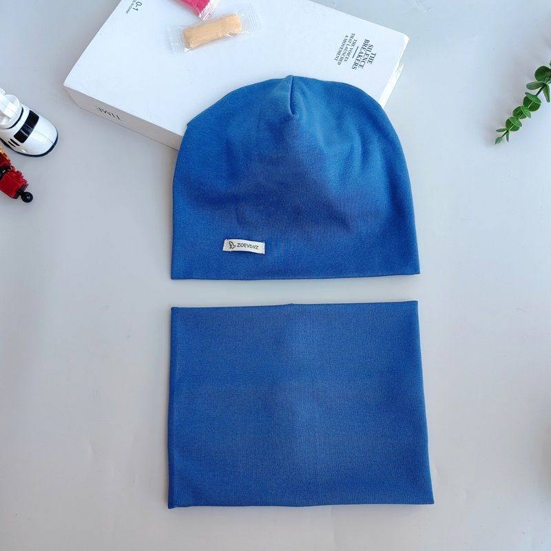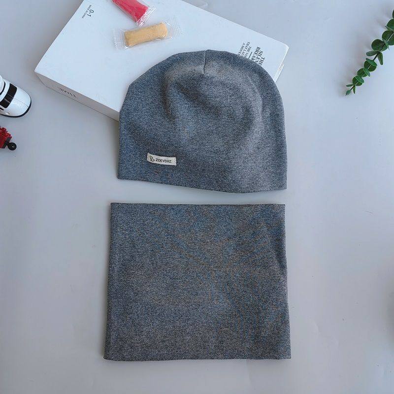 儿童纯棉帽子围脖两件套春秋纯色双层宝宝帽子套头脖套幼儿男女童