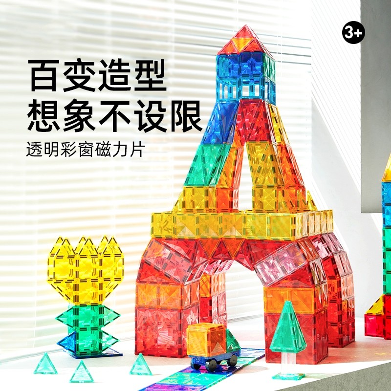 彩窗磁力片儿童益智玩具男女孩宝宝123到6岁磁铁方块拼图贴吸拼装