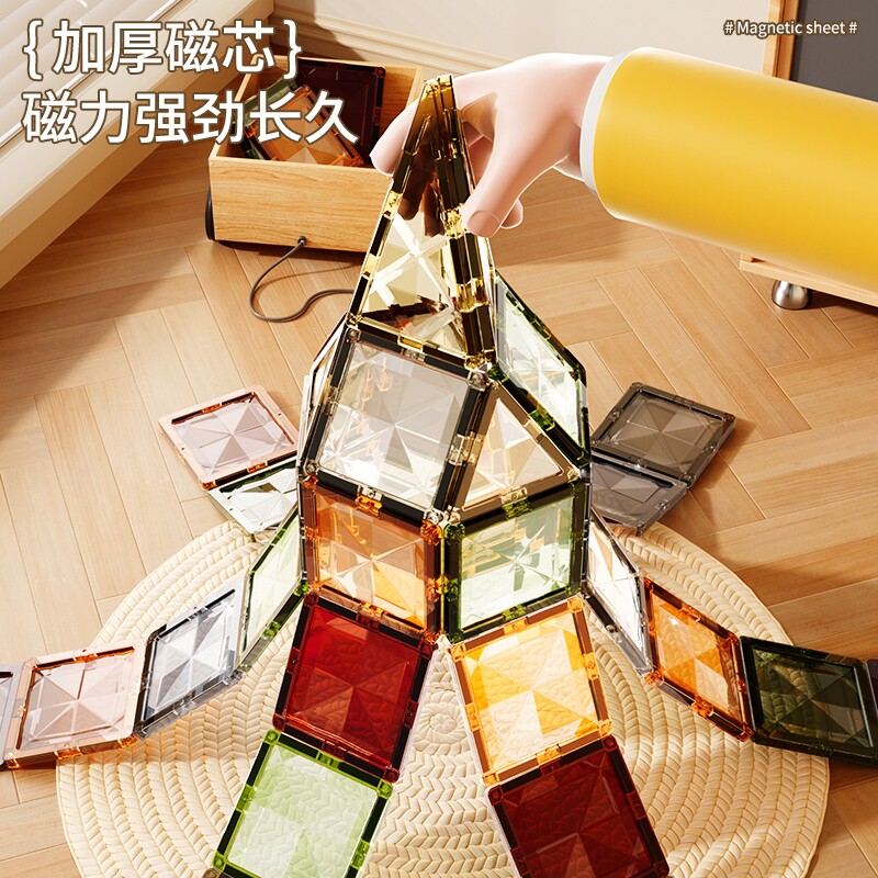 彩窗磁力片儿童益智玩具积木磁力拼图强磁贴男女孩圣诞礼物大自然