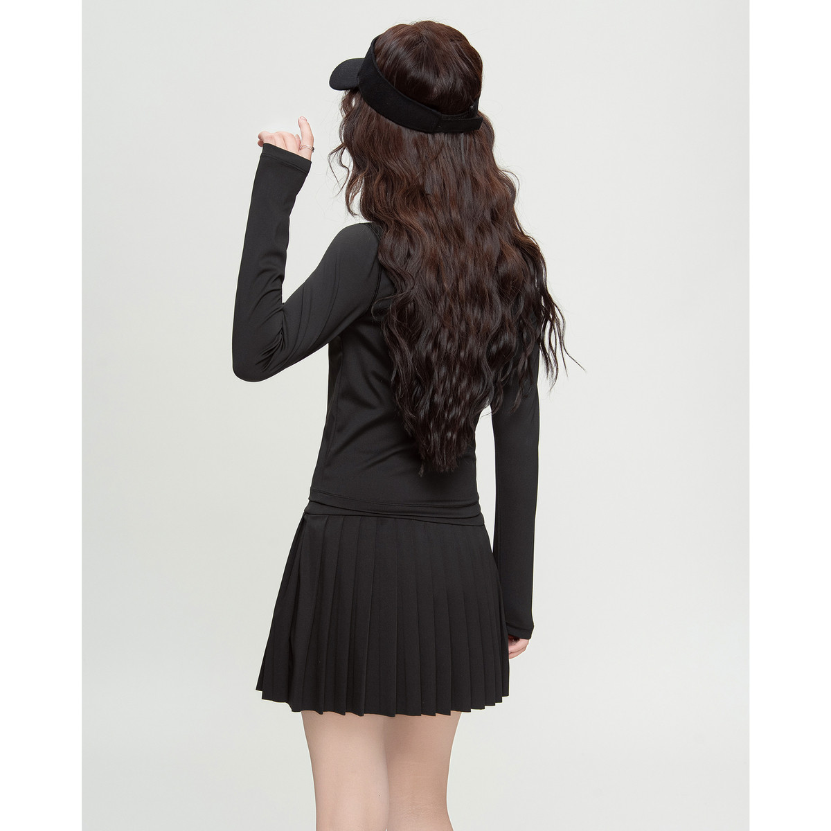 唐狮春秋女圆领短款长袖T恤百褶裙上下两件套小个子套装TD