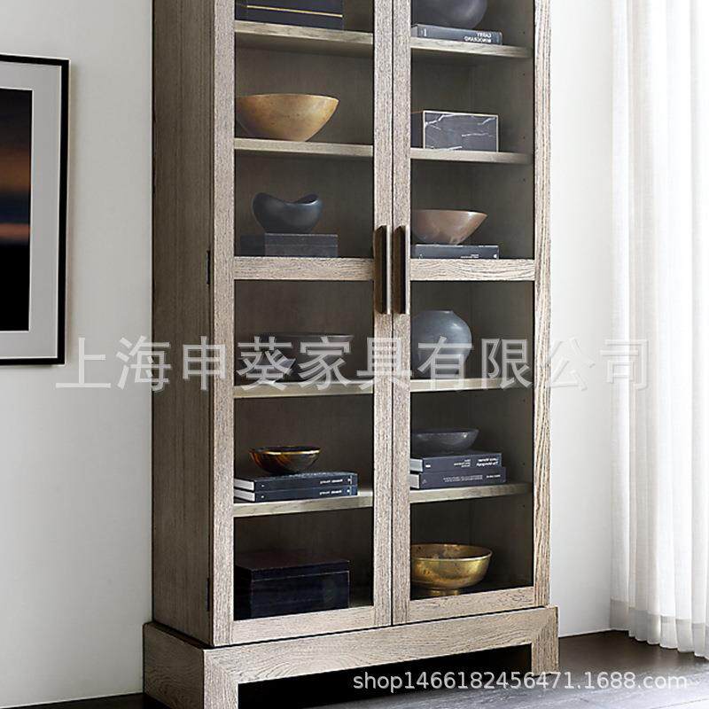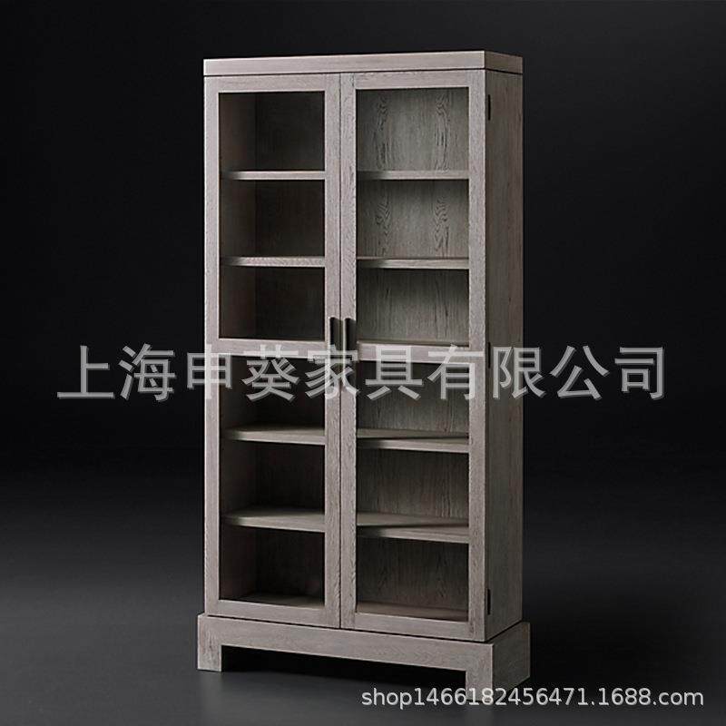 美式乡村实木办公书柜法式别墅客厅复古储物柜餐边柜橡木做旧书柜