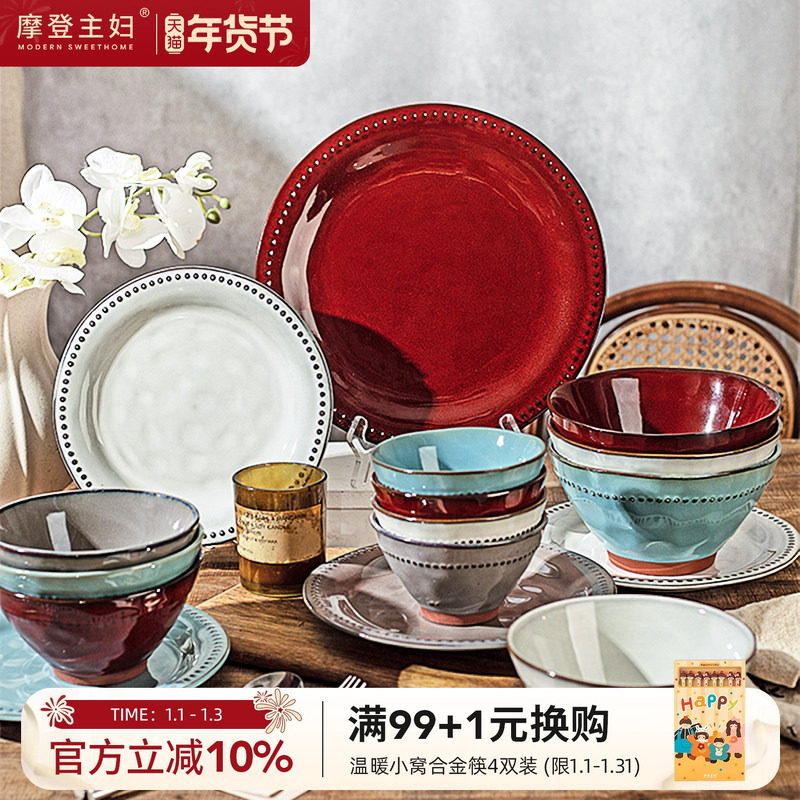 摩登主妇窑变碗盘碟餐具家用2025新款高颜值米饭碗汤面碗盘子餐盘