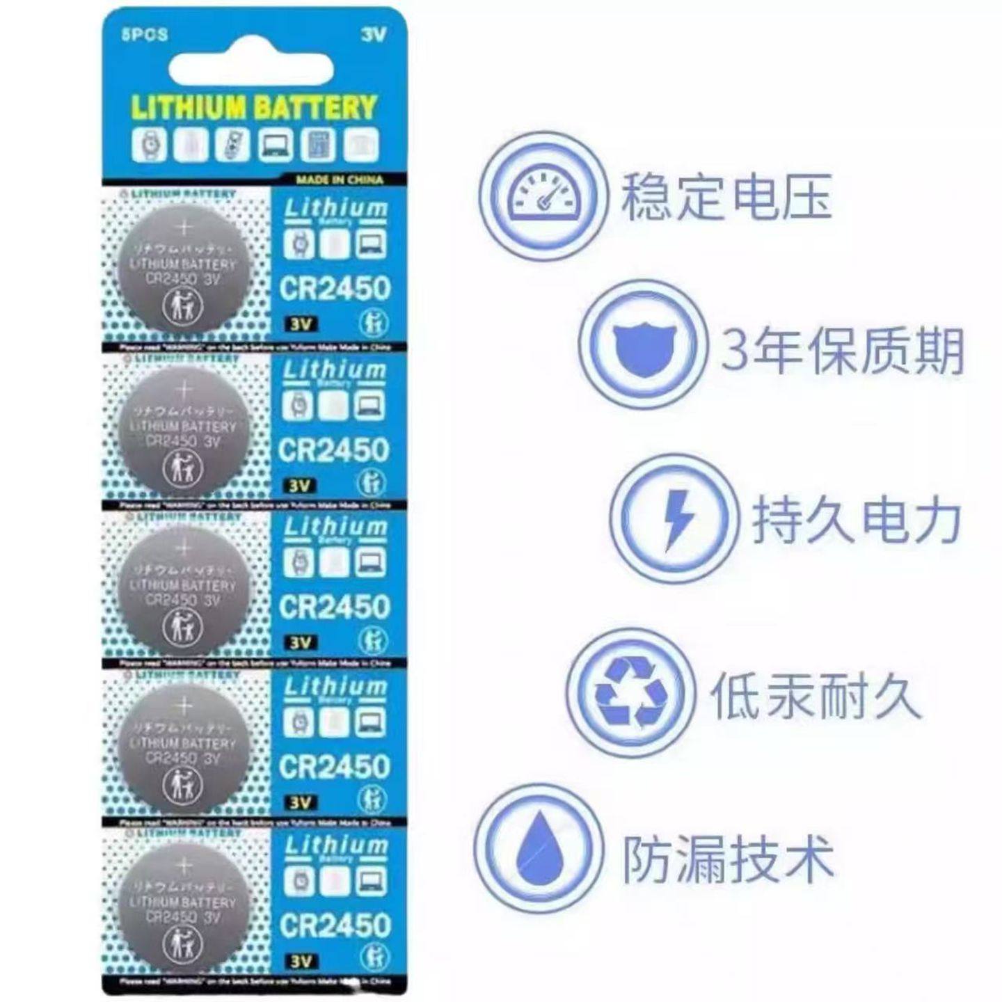 CR2450纽扣电池3V锂电子适用于升降晾衣架智能马桶热水器门禁卡烟雾报警器汽车钥匙遥控器菜鸟驿站灯条感应灯